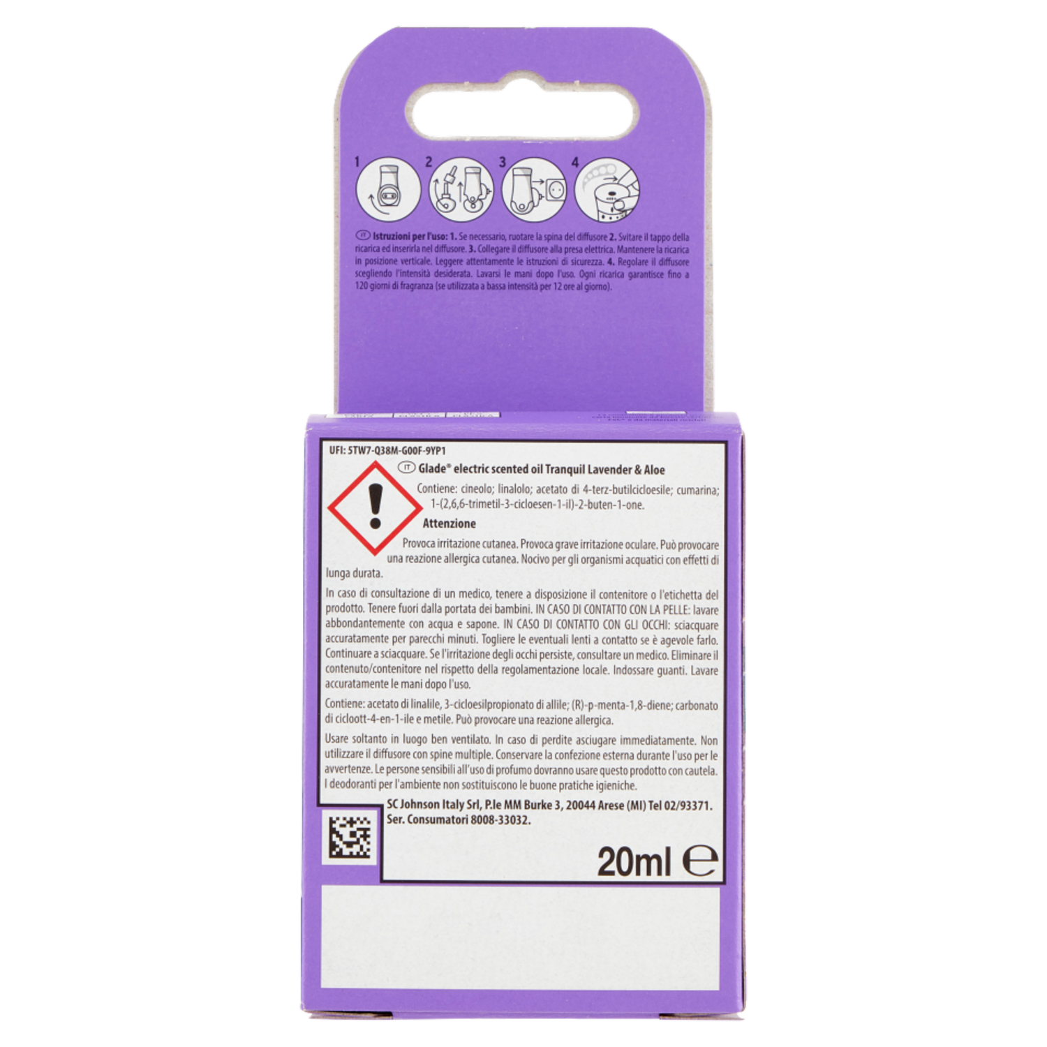 Glade® Liquido Elettrico Ricarica, Profumatore per ambienti, Fragranza Lavanda & Aloe 20ml