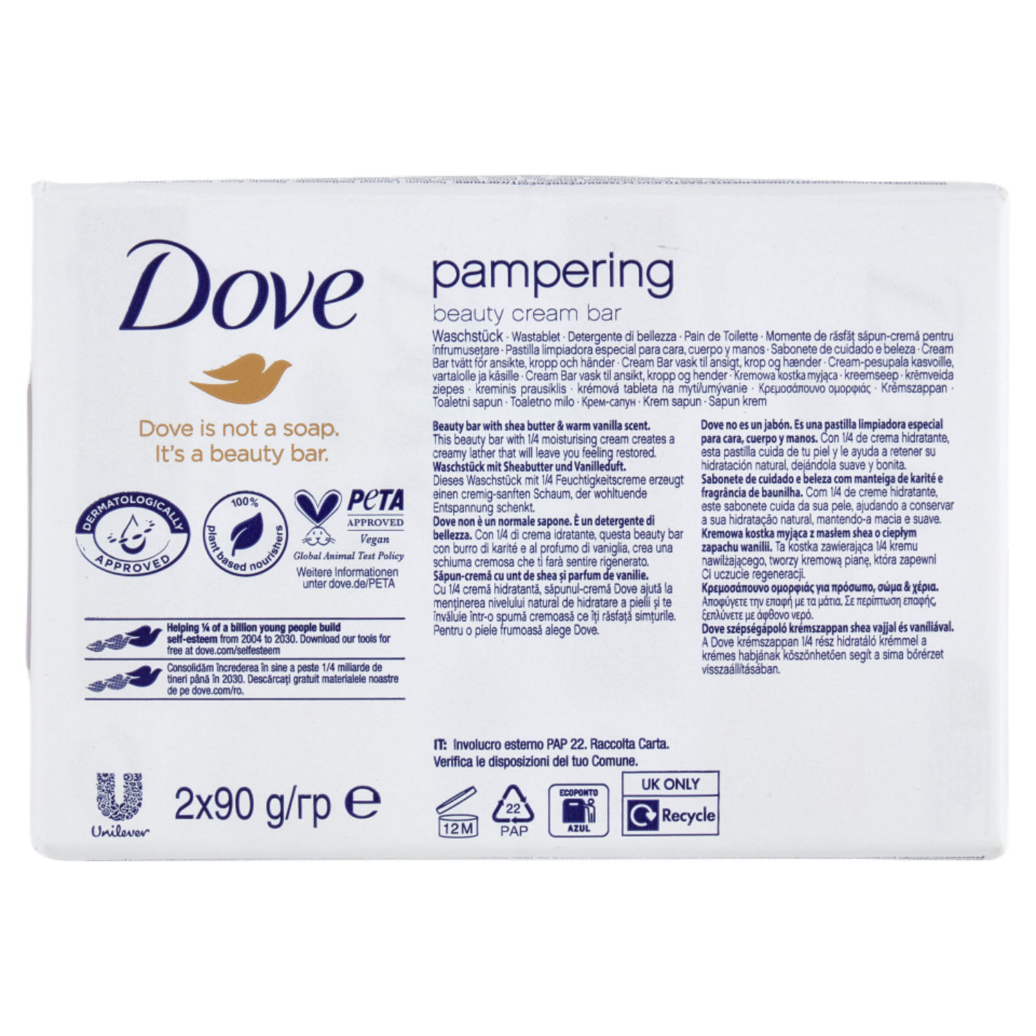 Dove pampering beauty cream bar with shea butter & warm vanilla scent Bars 2 x 90 g