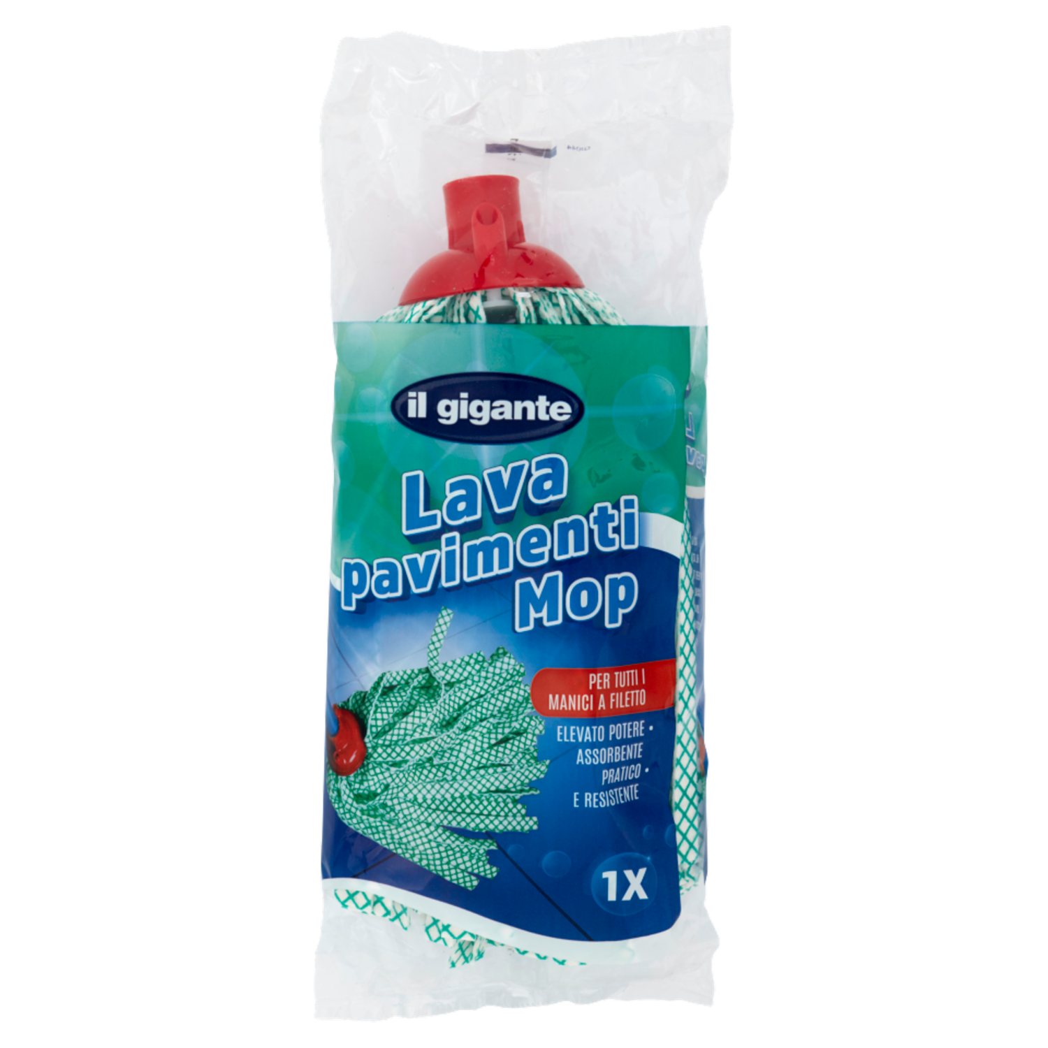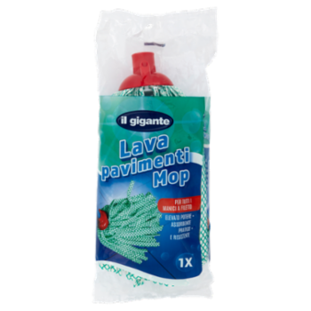 Il lava pavimenti mop Il Gigante è utilizzabile per tutti i tipi di superfici, dalle piastrelle al cotto, dal marmo al parquet. Assorbe ogni tipo di liquido ed è facile da strizzare.