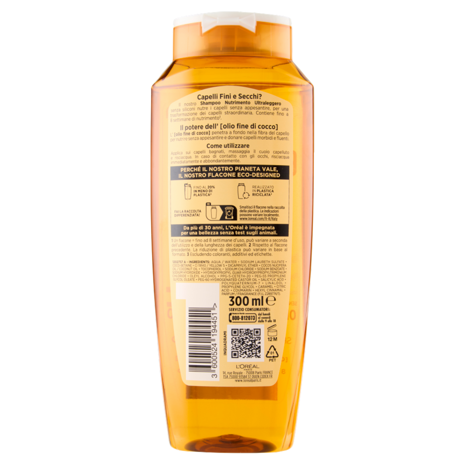 Elvive Olio Straordinario di Cocco Shampoo Nutrimento, per Capelli Fini e Secchi, 300 ml