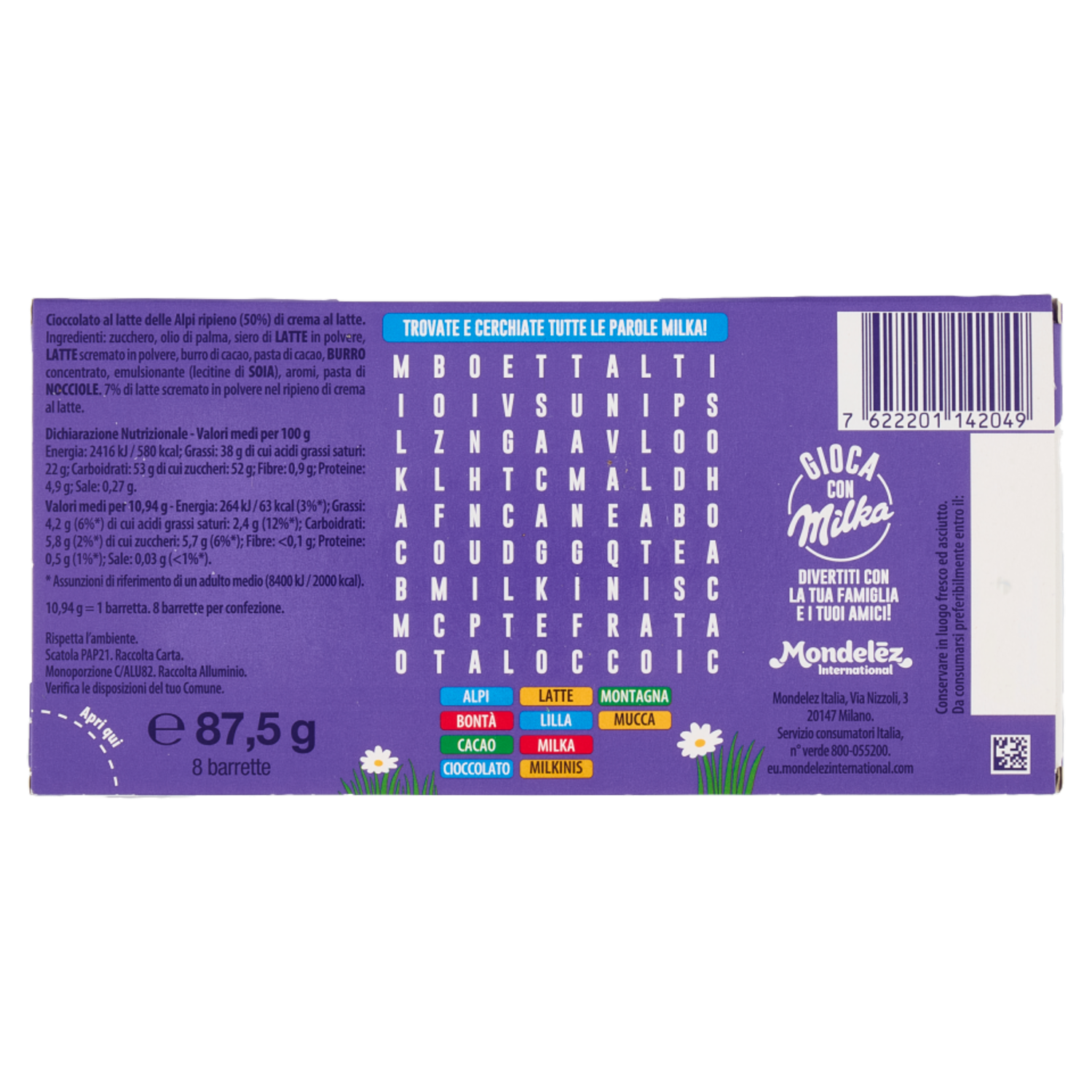 Milka Milkinis, barrette di cioccolato Milka con ripieno di crema al latte - 87,5g