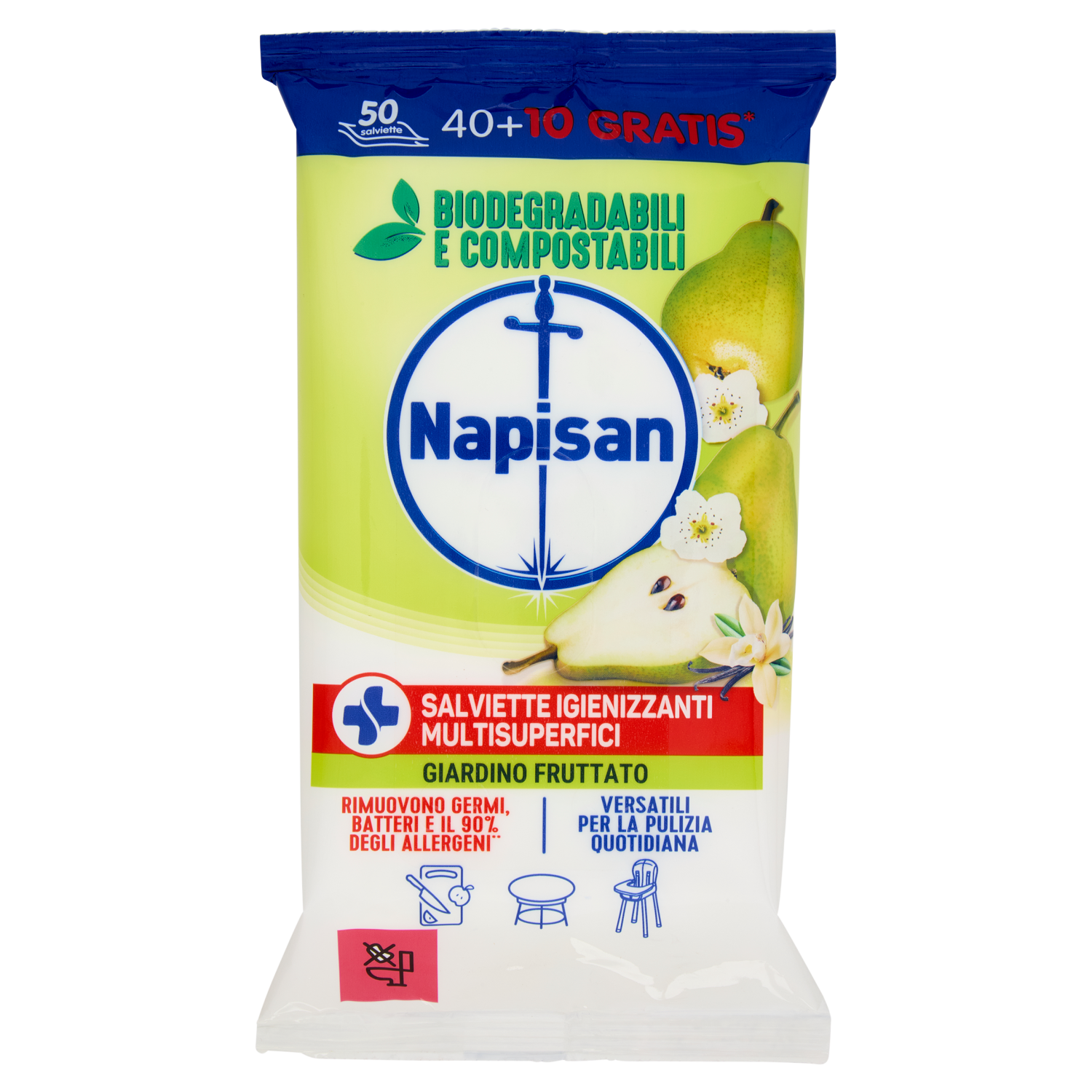 Napisan Salviette Igienizzanti Multisuperfici Giardino Fruttato 40 + 10 pz