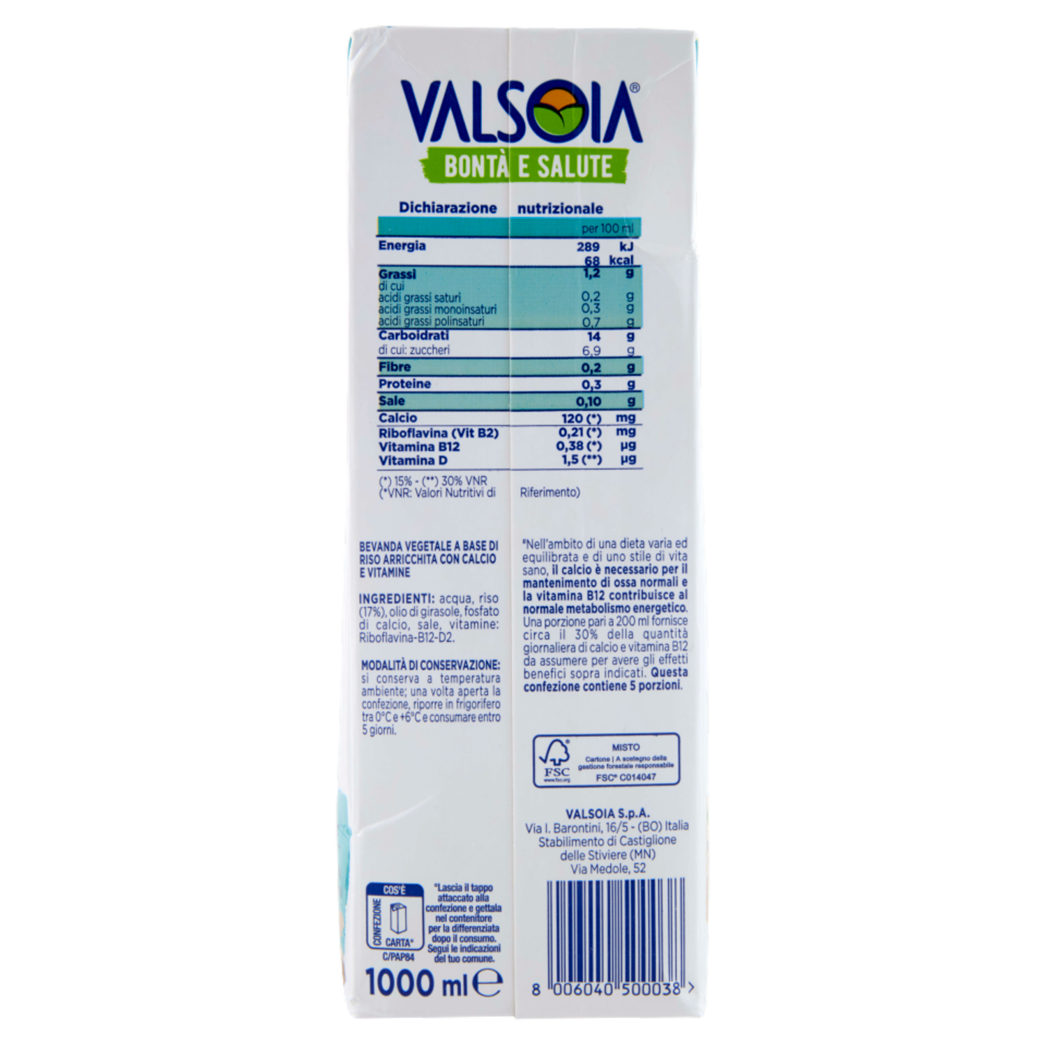 Valsoia Bontà e Salute Riso Drink 1000 ml