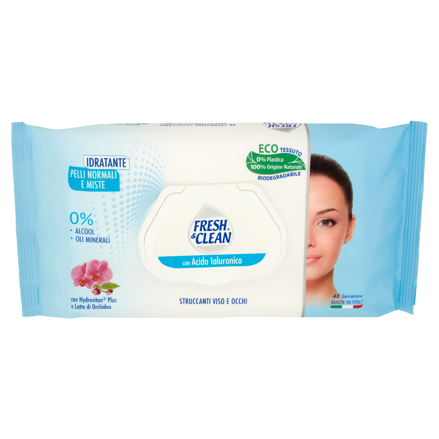 Fresh & Clean con Acido Ialuronico Salviettine Struccanti Viso e Occhi Pelli Normali e Miste 48 pz