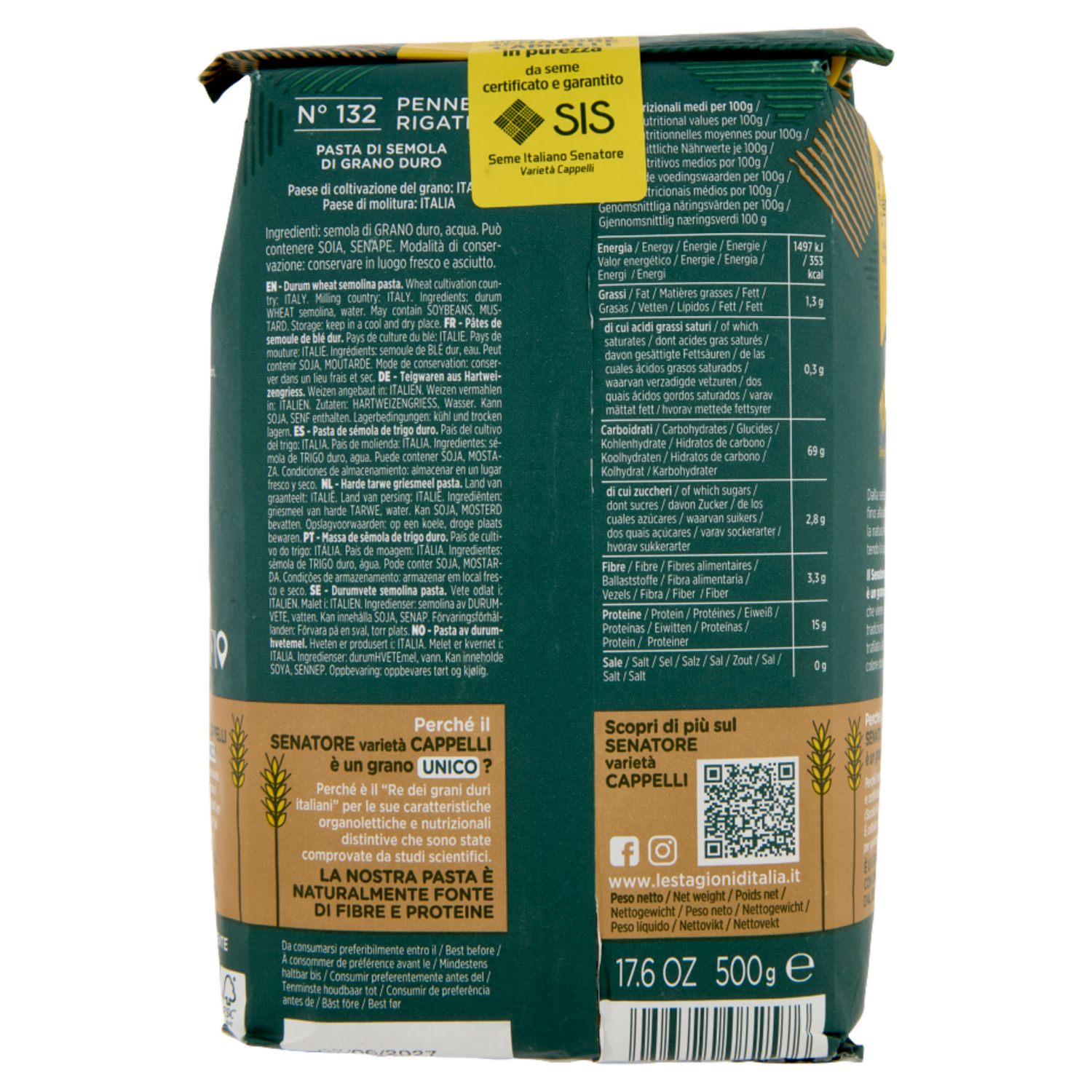 Le Stagioni d'Italia Senatore varietà Cappelli Penne Rigate 500 g