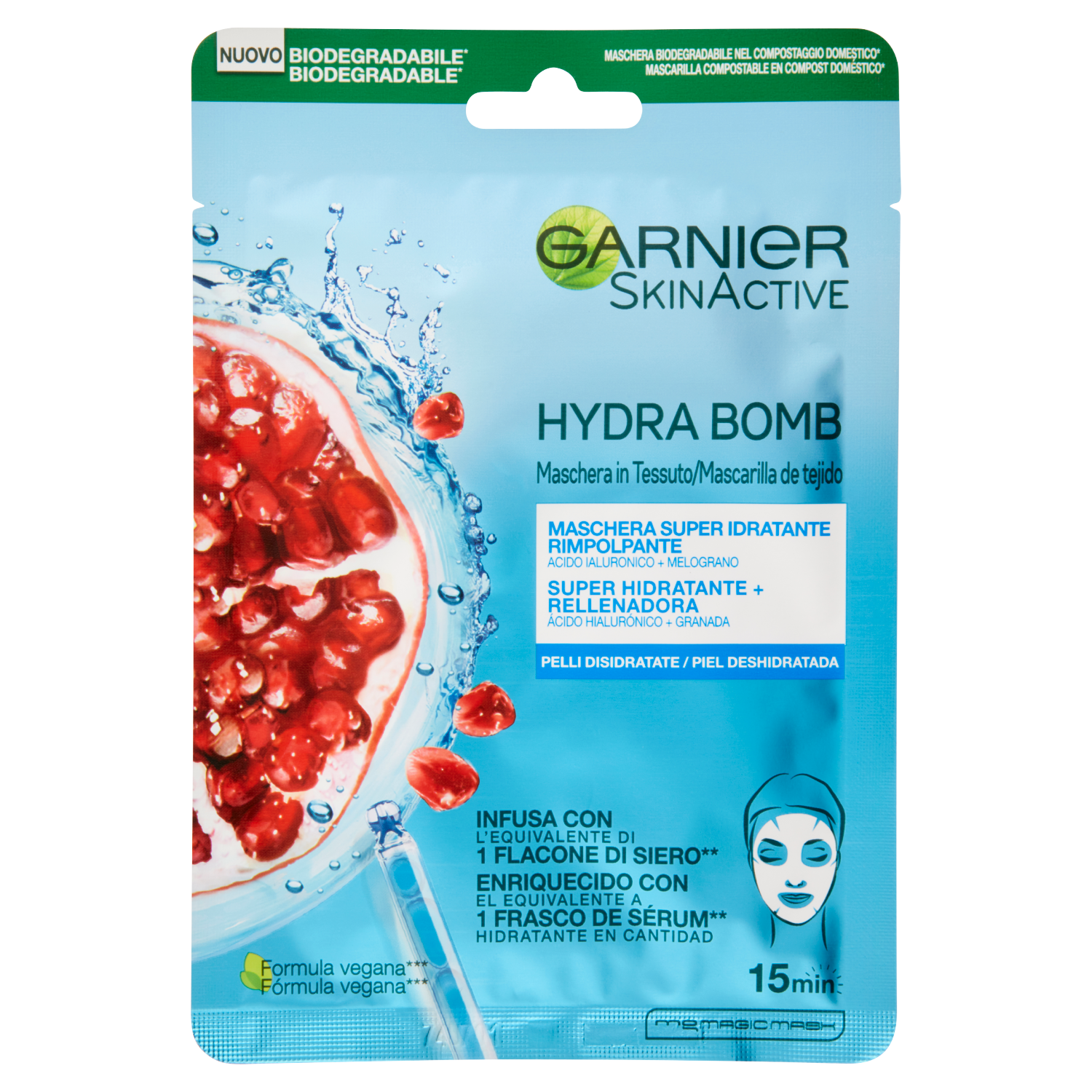Garnier SkinActive Hydra Bomb Maschera Viso in Tessuto Super Idratante Energizzante al Melograno