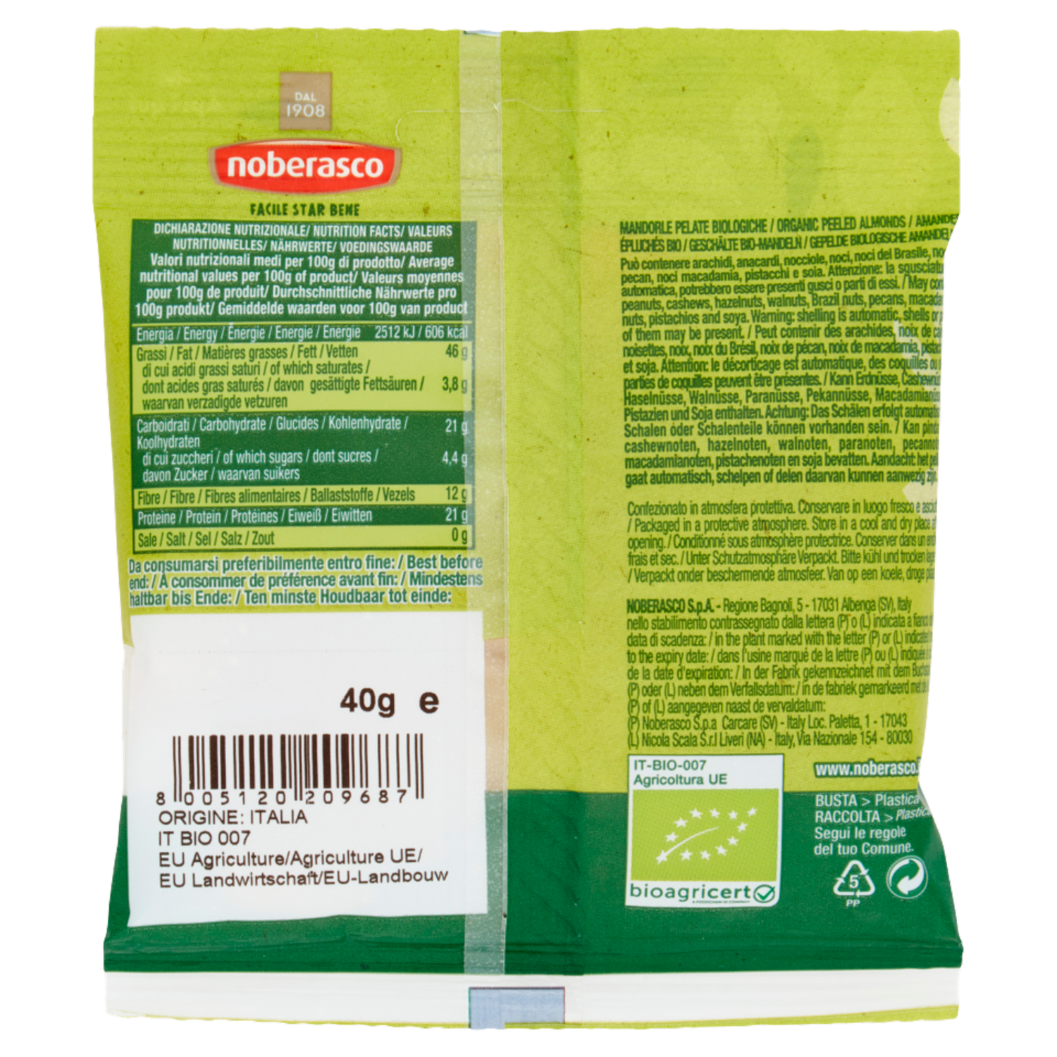 noberasco Bio Mandorle Pelate 40 g