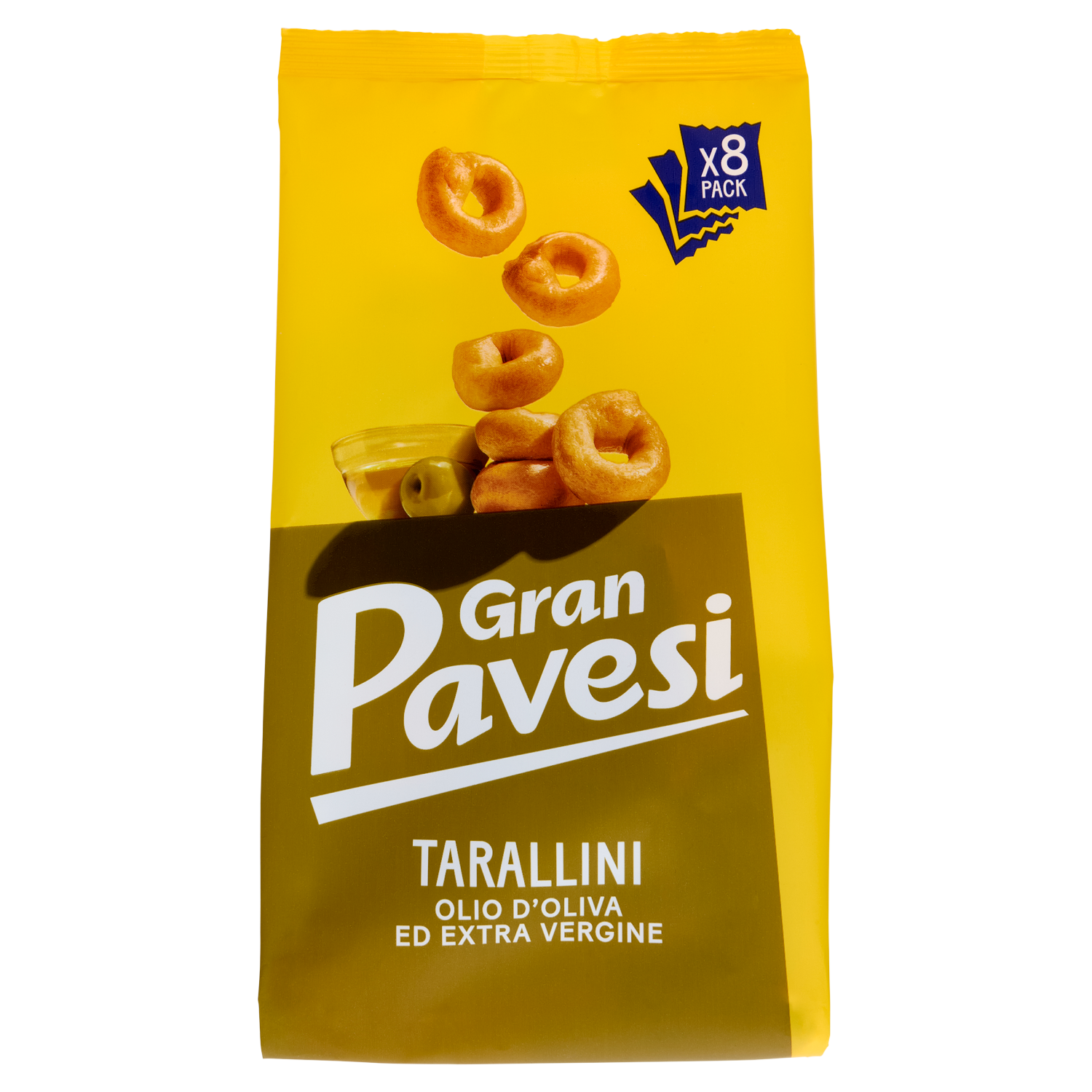 Gran Pavesi Snack Tarallini Olio di Oliva ed Extra Vergine, Senza Olio di Palma, 8 Pacchetti 256g