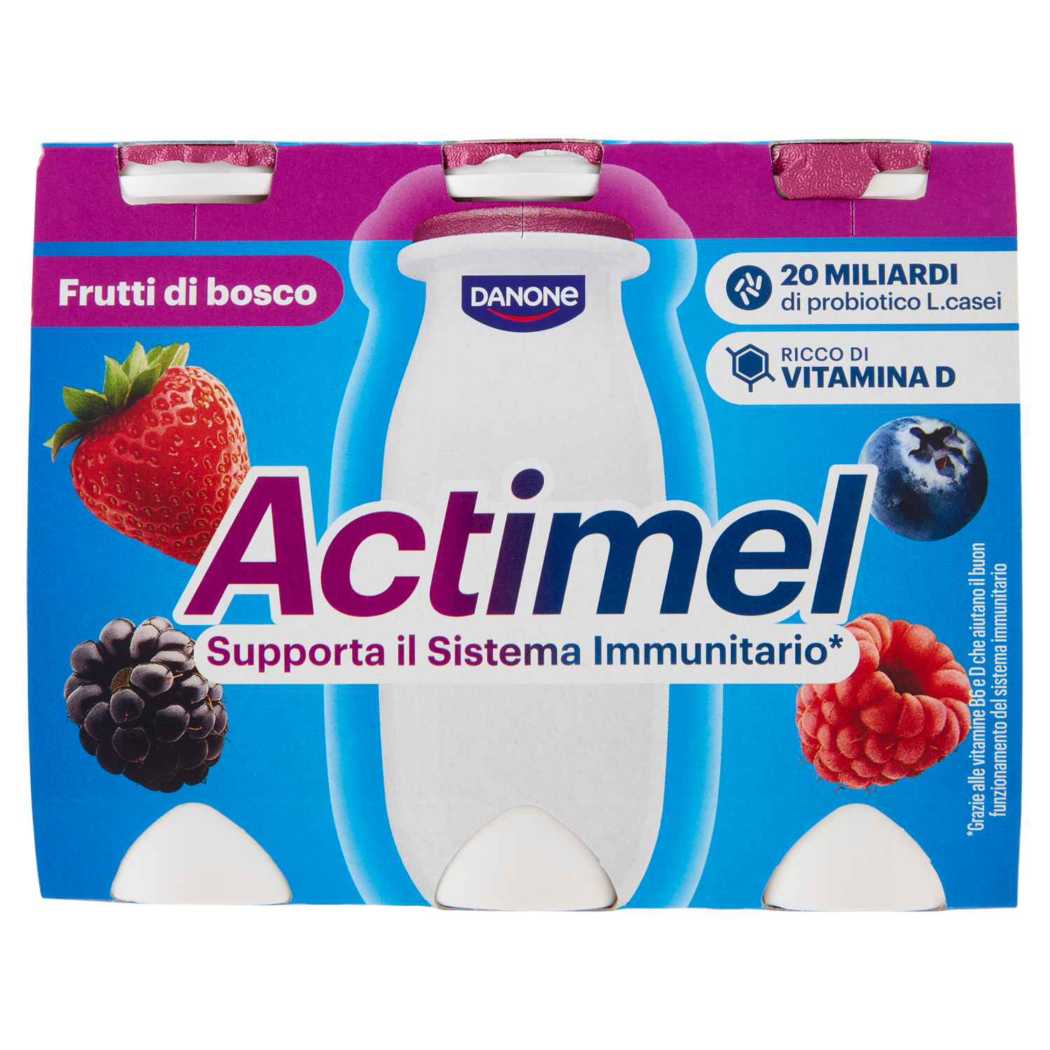 ACTIMEL, Yogurt da Bere con Vit B6 e D per il Sistema Immunitario, gusto Frutti di Bosco, 6X100G