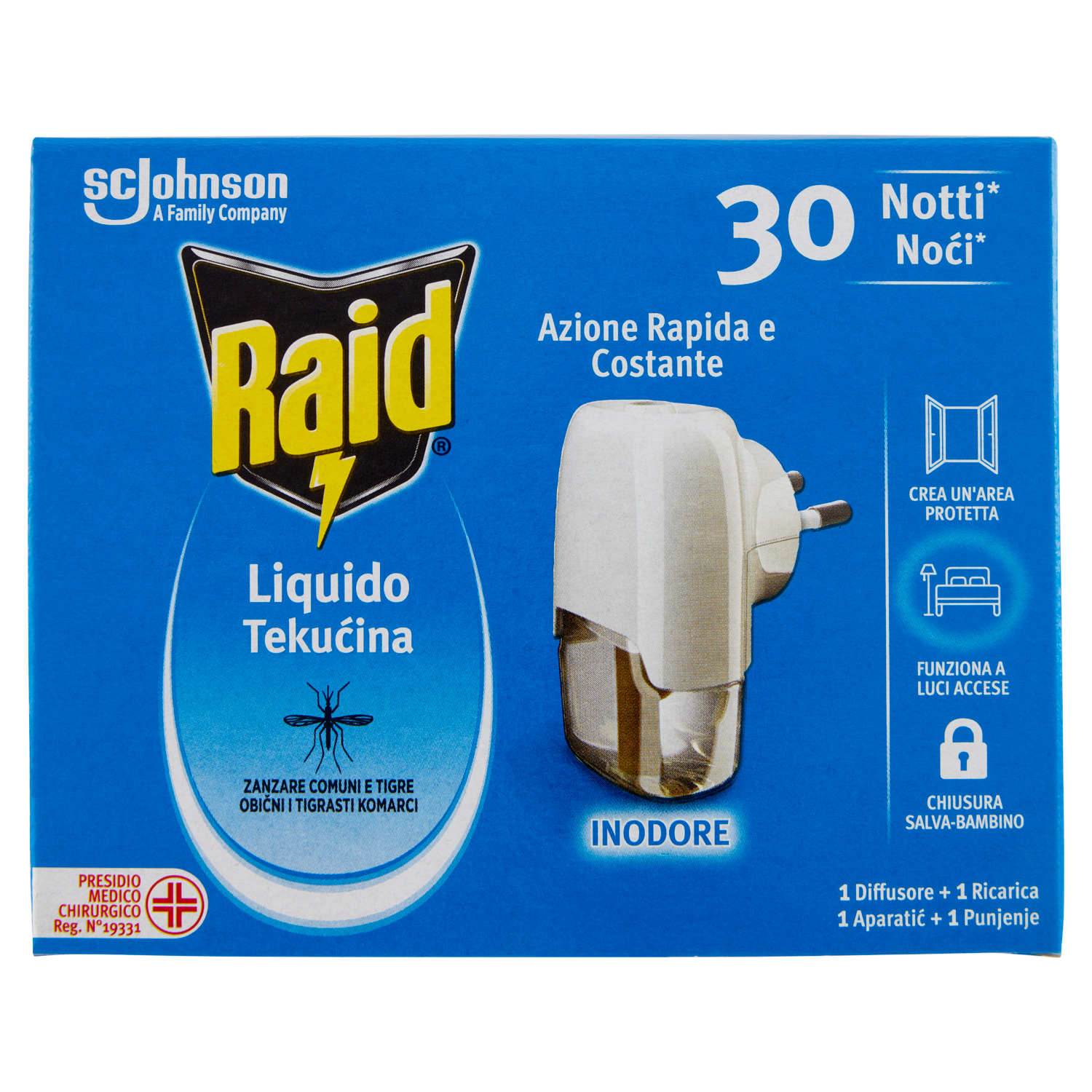 Raid Liquido Elettrico Antizanzare Contro Zanzare, 1 Base e 1 Ricarica 21 ml, 30 Notti