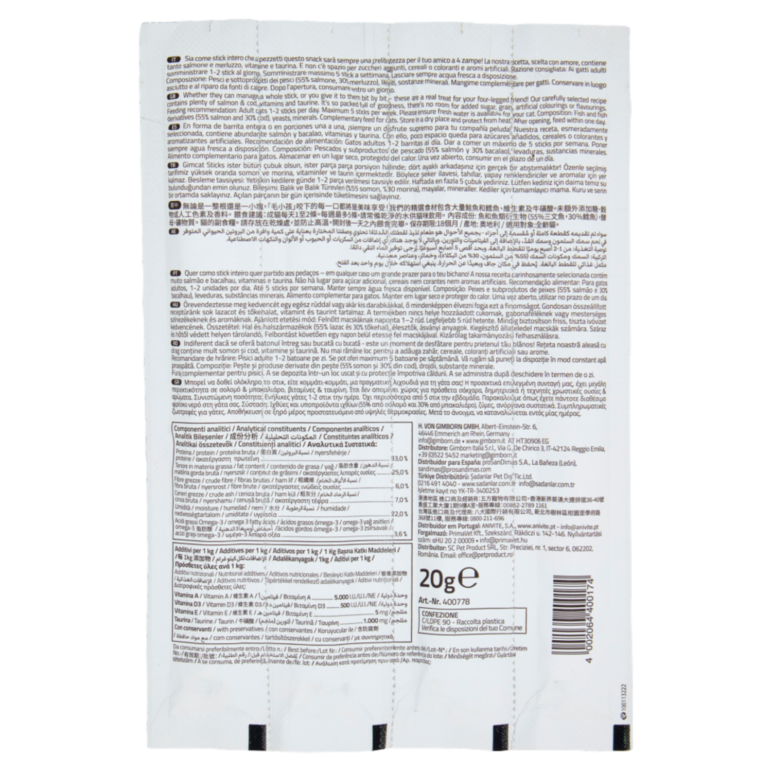 GimCat Sticks Ricco in Salmone & Merluzzo 4 Sticks 20 g