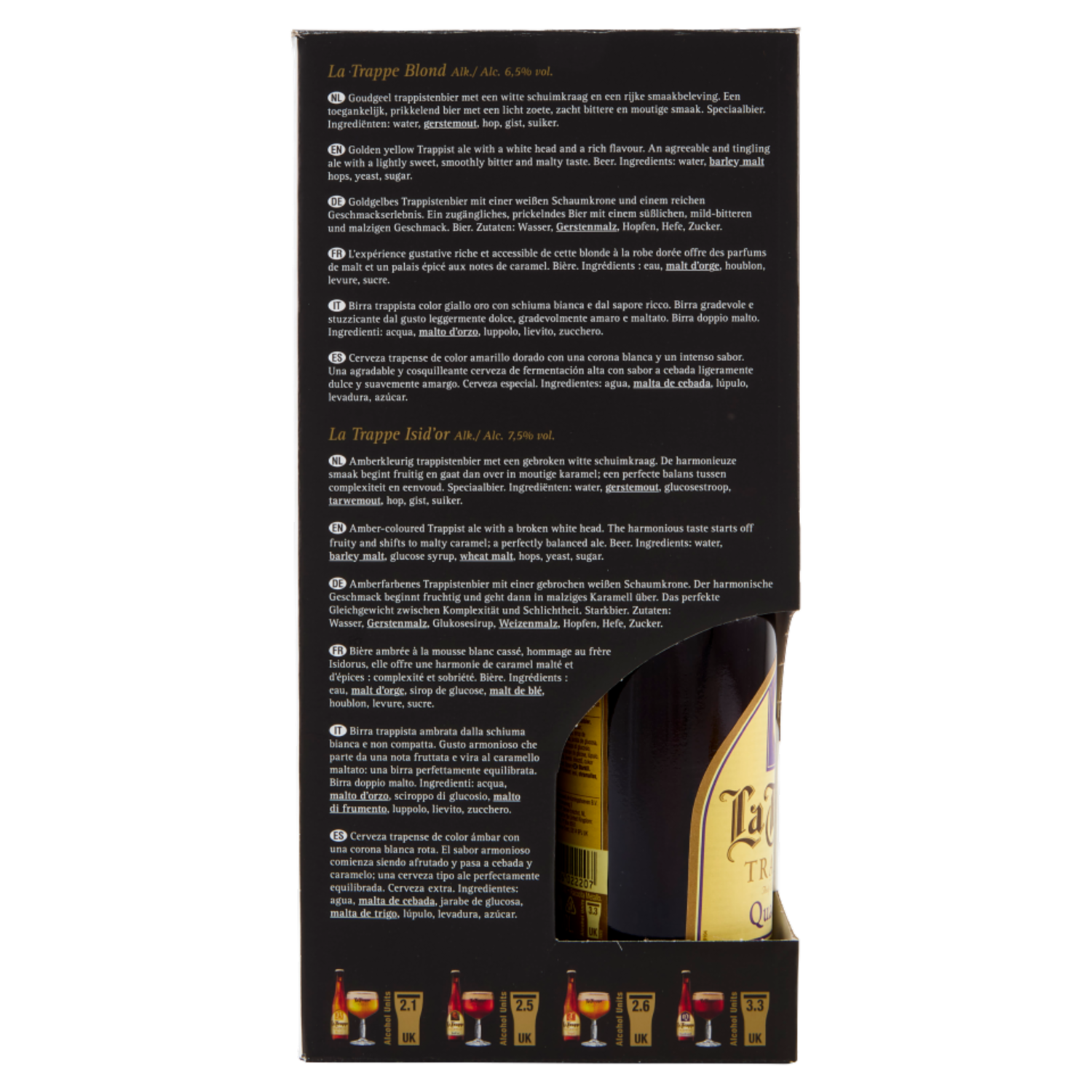 La Trappe Trappist Quadrupel 33 cL + Tripel 33 cL + Blond 33 cL + Isid'or 33 cL + 1 Bicchiere