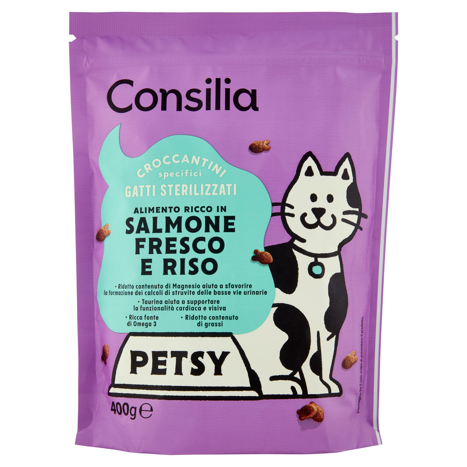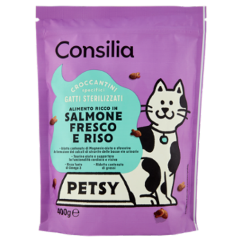 Consilia Petsy Gatto Sterilizzato Croccantini con Salmone Fresco e Riso 400 g