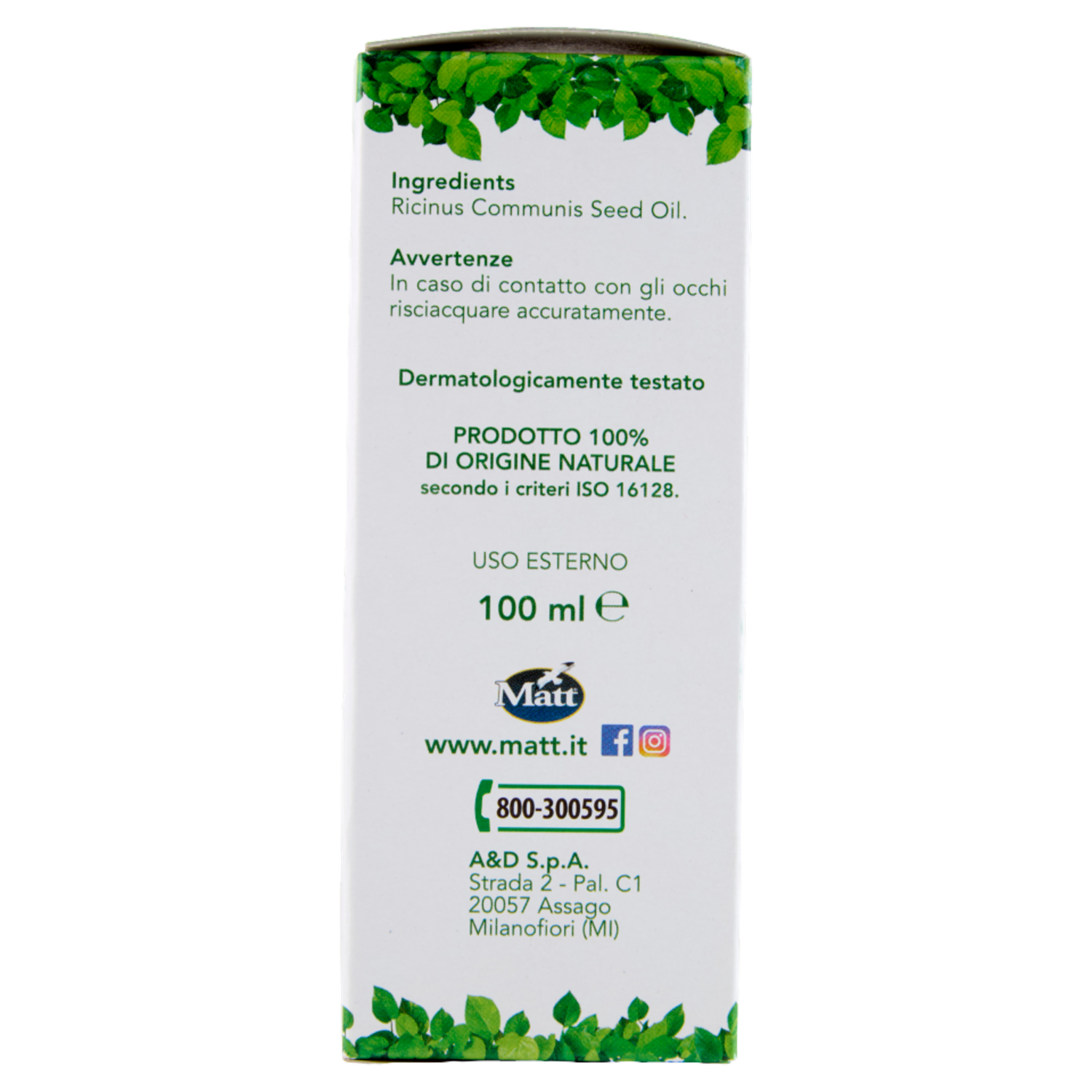 Matt olio Ricino Rinforzante Capelli - Ciglia - Unghie 100 ml