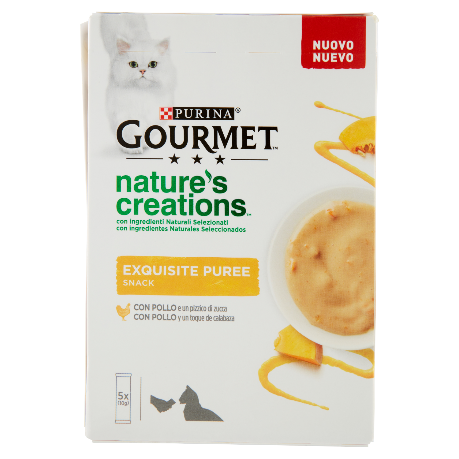 PURINA GOURMET Snack gatto Nature's Creations Exquisite Puree con Pollo e Zucca Multipack 5x10g