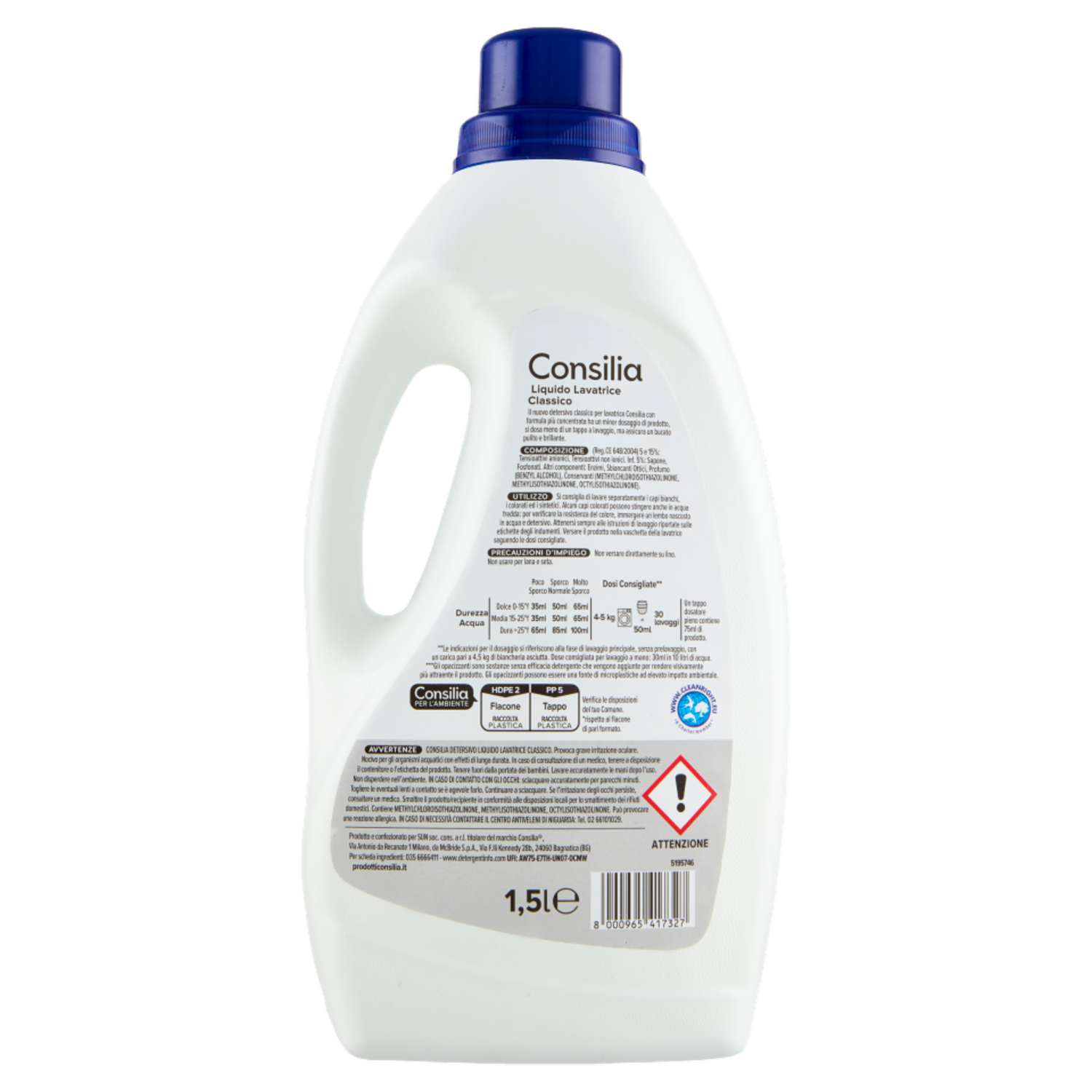 Consilia Detersivo per Lavatrice Liquido Classico 30 Lavaggi 1,5 L