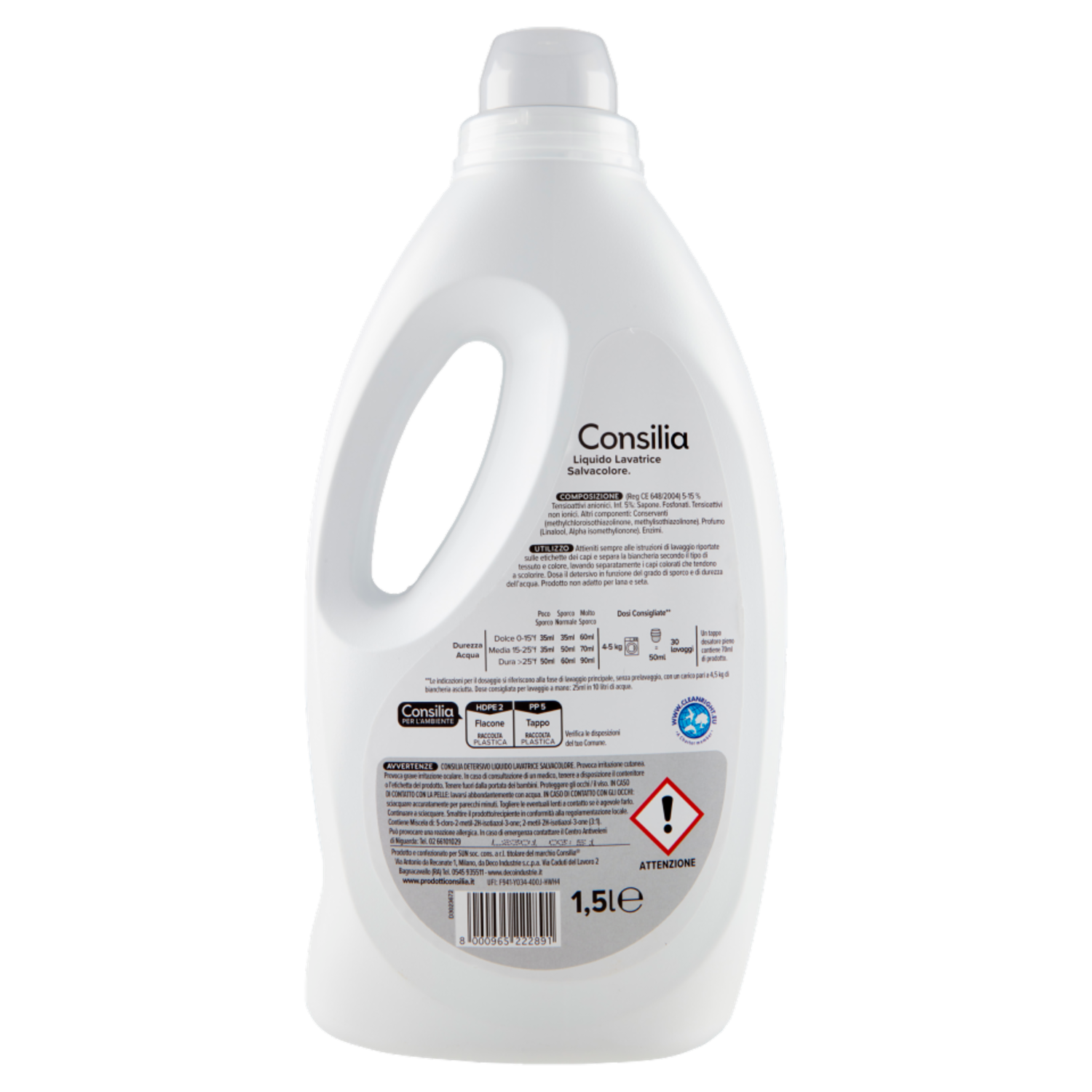 Consilia Detersivo per Lavatrice Liquido Salvacolore 30 Lavaggi 1,5 L
