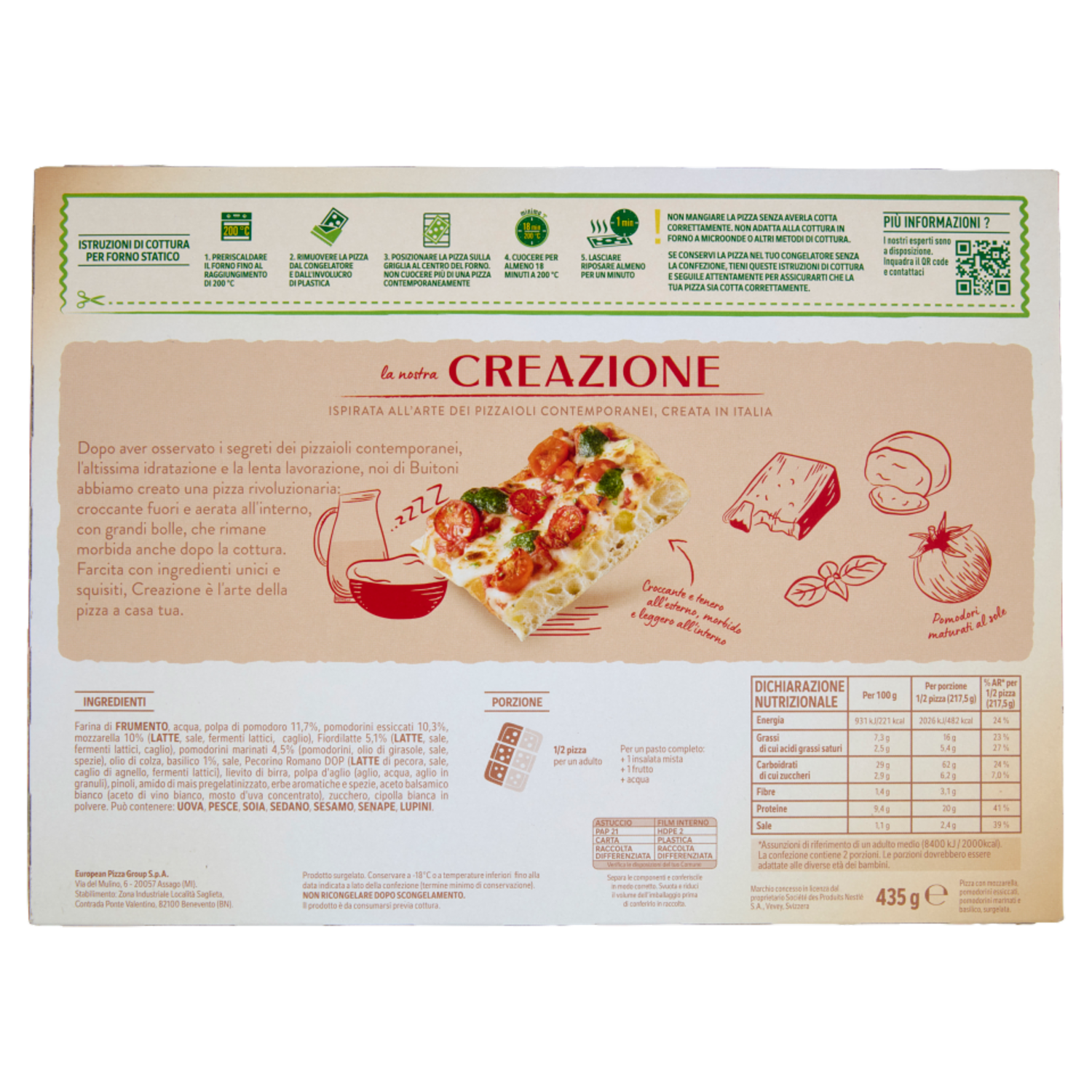 BUITONI Creazione Caprese Pizza surgelata 435g