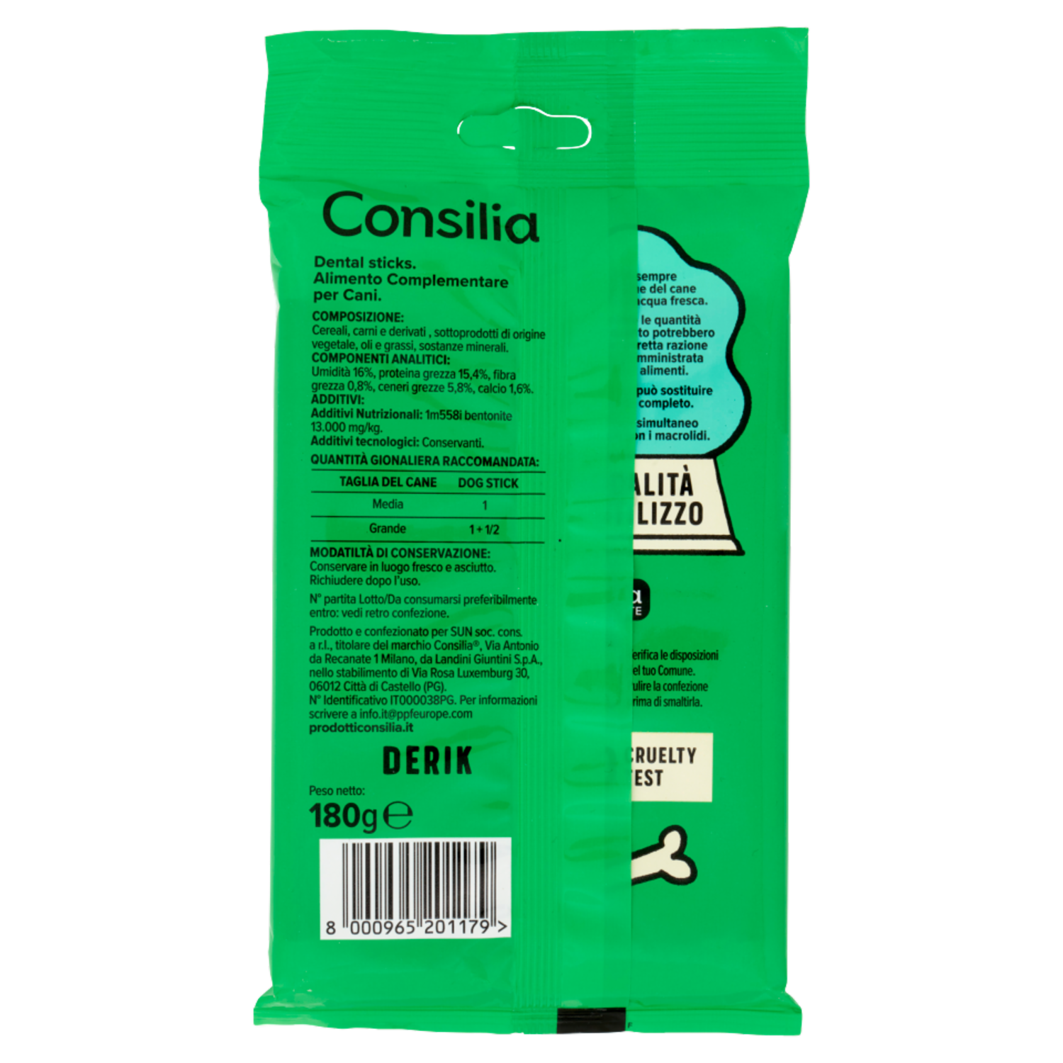 Consilia Derik Cane di Taglia Medio/Grande Dental Sticks 180 g