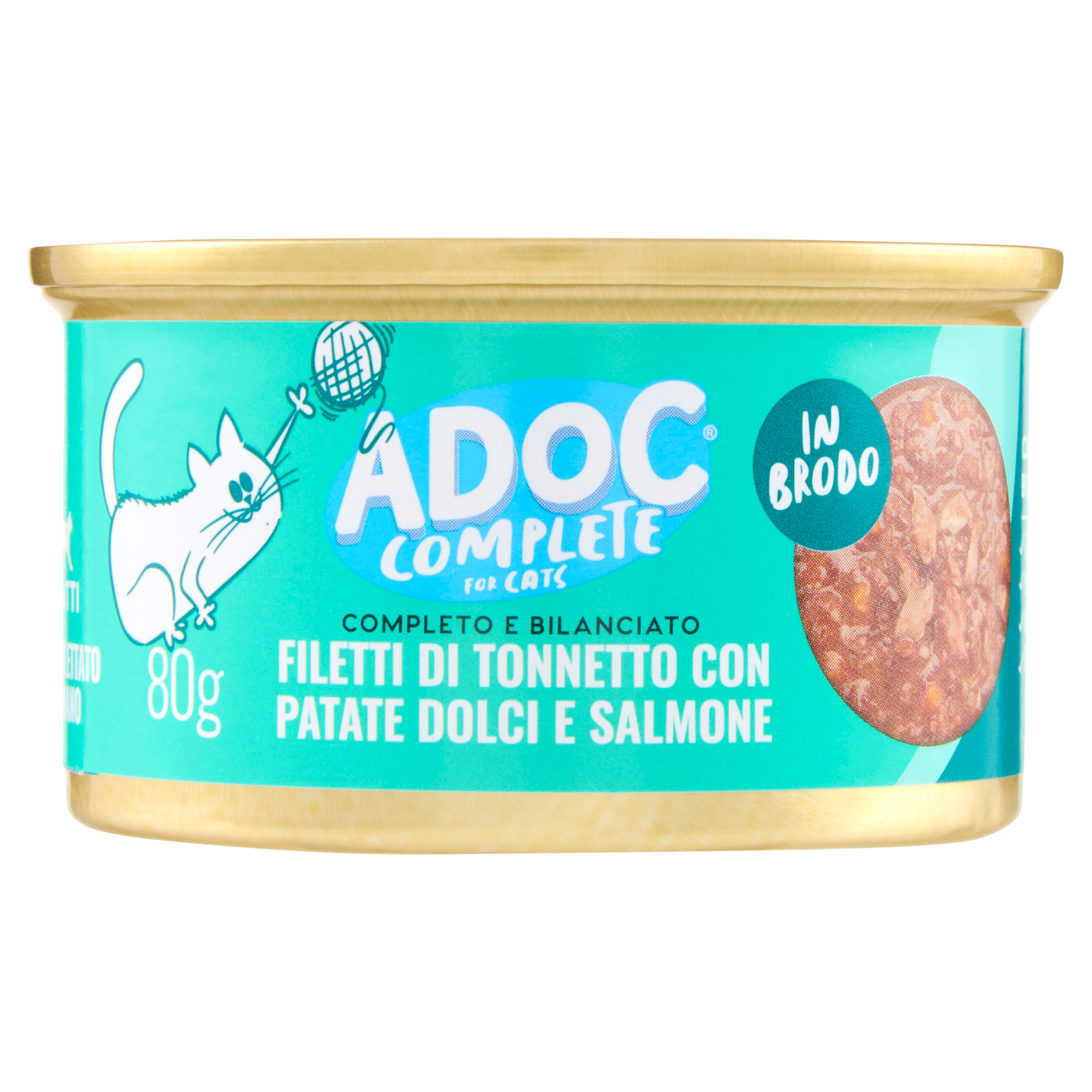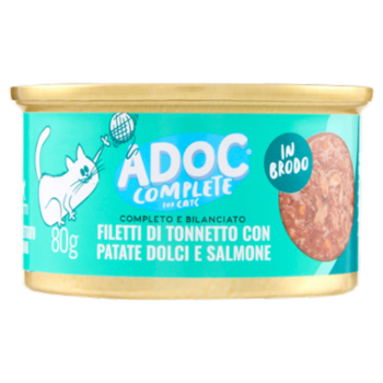 ADoC Complete For Cats Filetti di Tonnetto con Patate Dolci e Salmone in Brodo 80 g
