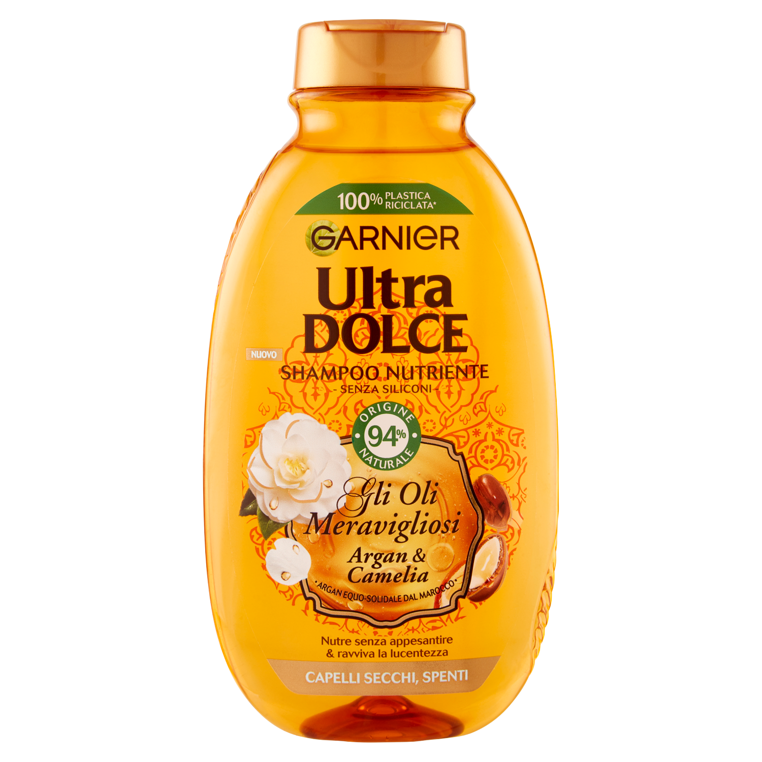 Garnier Ultra Dolce Shampoo Meraviglioso all'olio d'argan e di camelia per capelli secchi, 250 ml