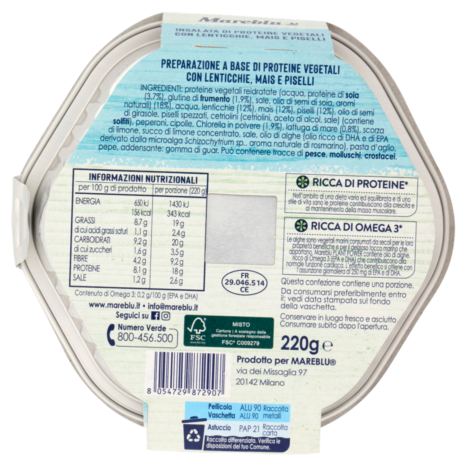 Mareblu Plant Power Insalata di Proteine Vegetali con Lenticchie, Mais e Piselli 220 g