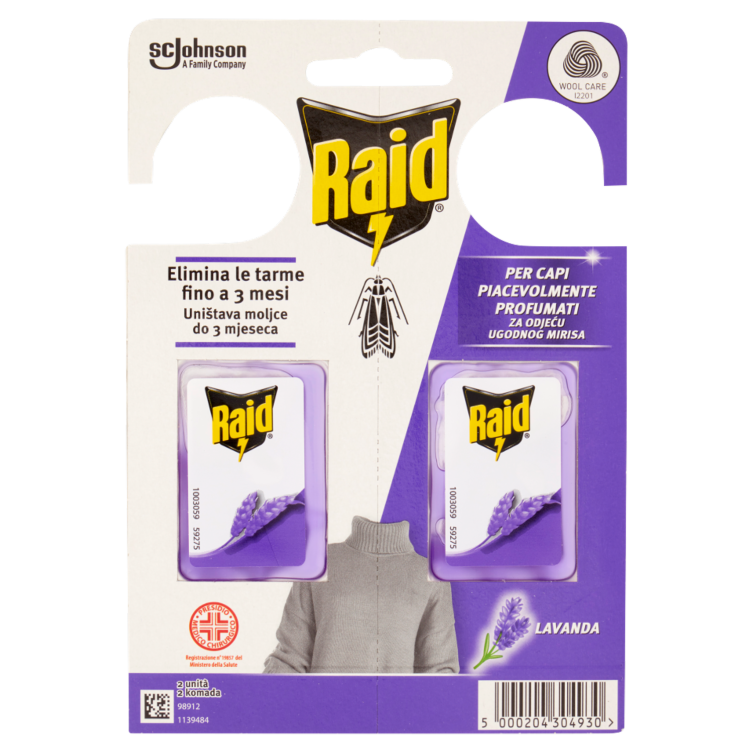 Raid Anti Tarme Gel Vestiti, per Capi Piacevolmente Profumati, Fragranza alla Lavanda, 2 x 3g