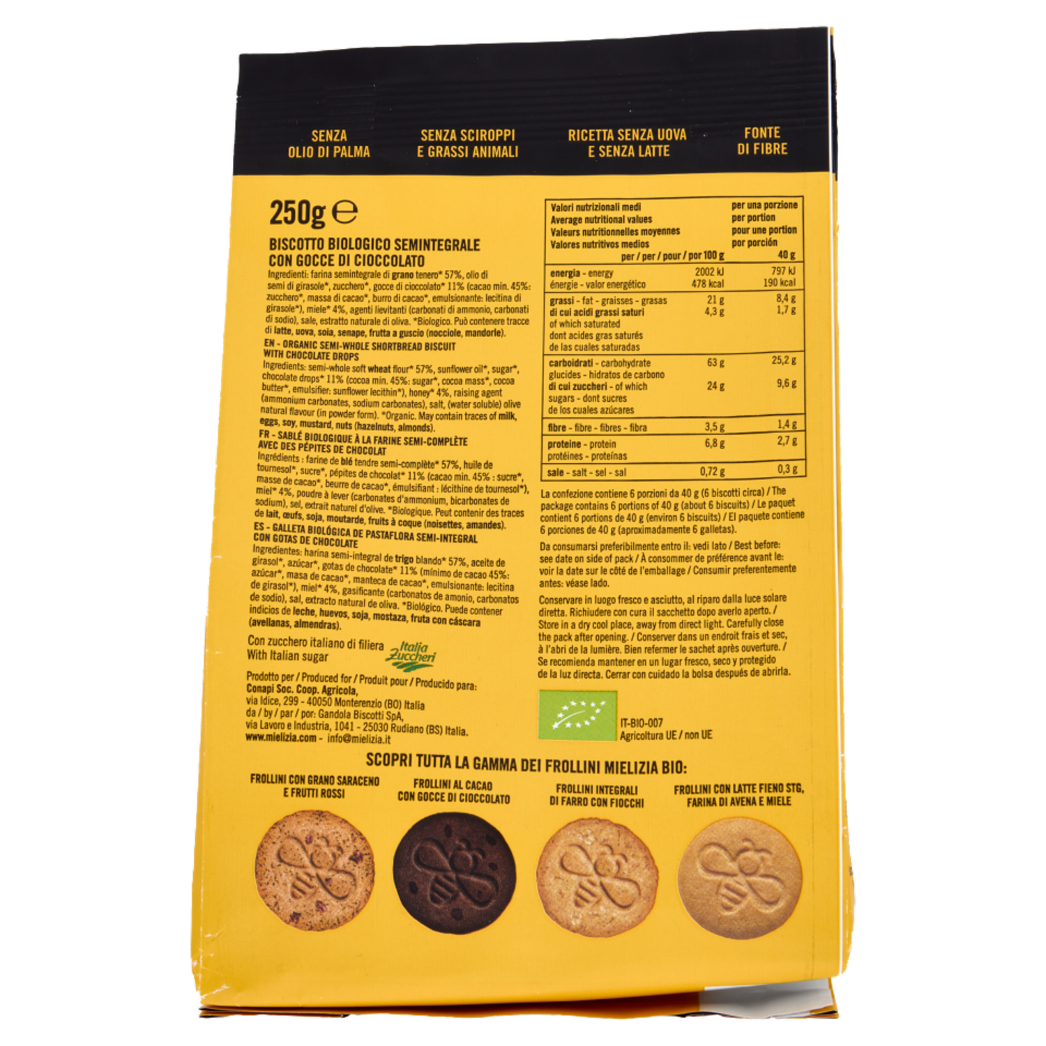 Mielizia Bio Frollini Semintegrali con Gocce di Cioccolato 250 g