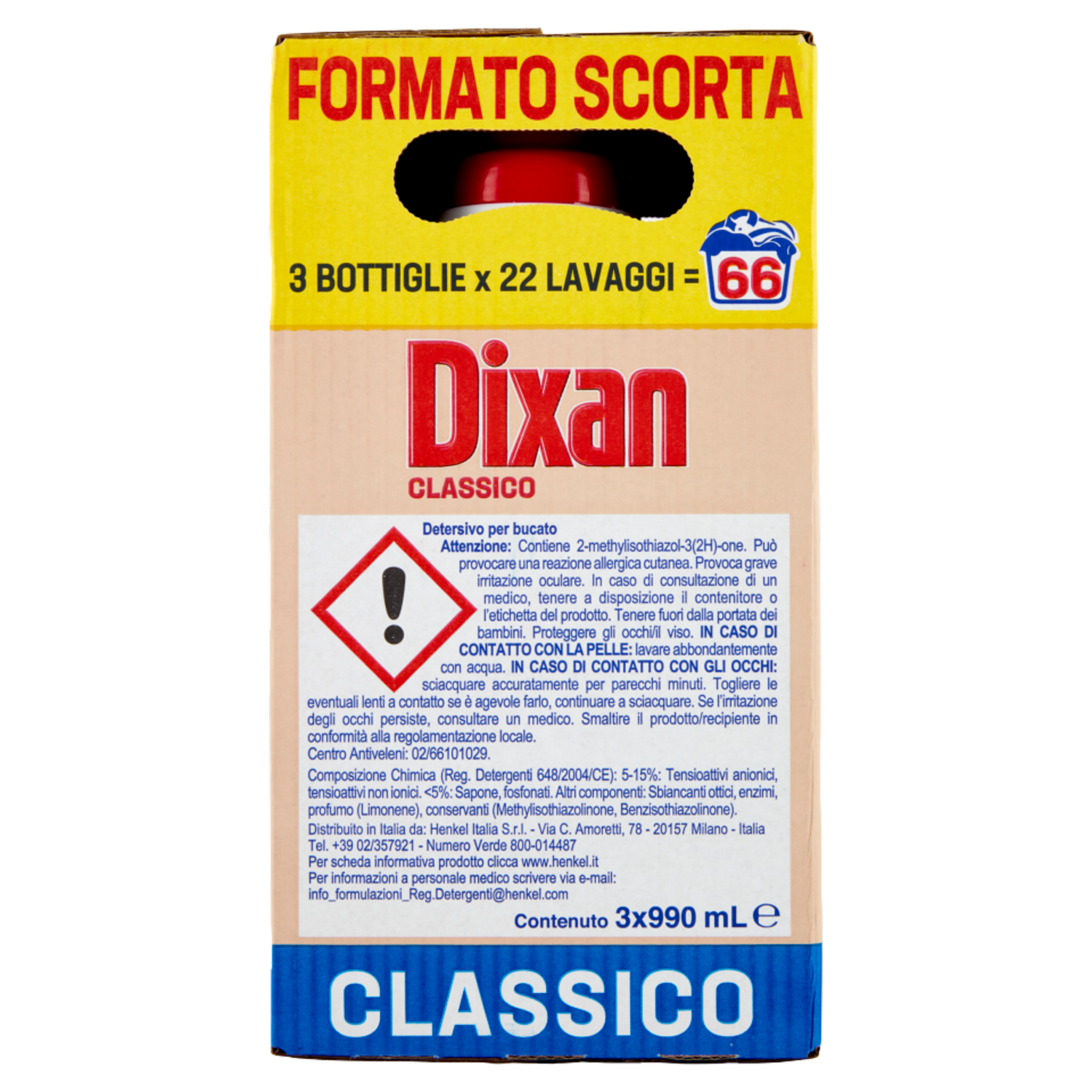 DIXAN Liquido Classico 3x22=66 Lavaggi 3 x 990 ml