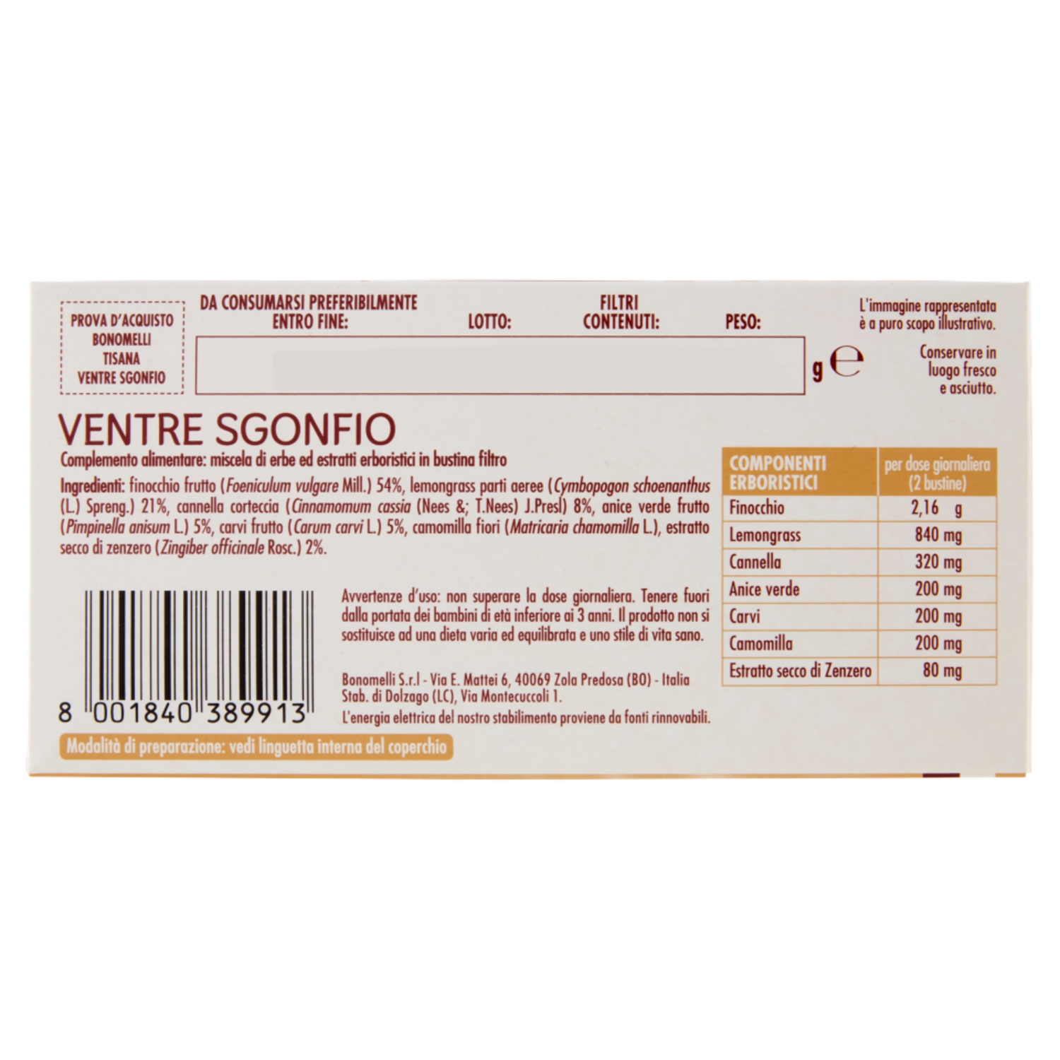 Bonomelli Ventre Sgonfio Tisana per Infusione 16 Filtri 32 g