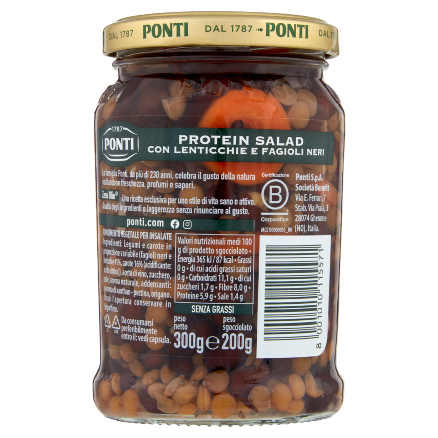 Ponti Zero Olio Protein Salad con Lenticchie e Fagioli Neri 300 g