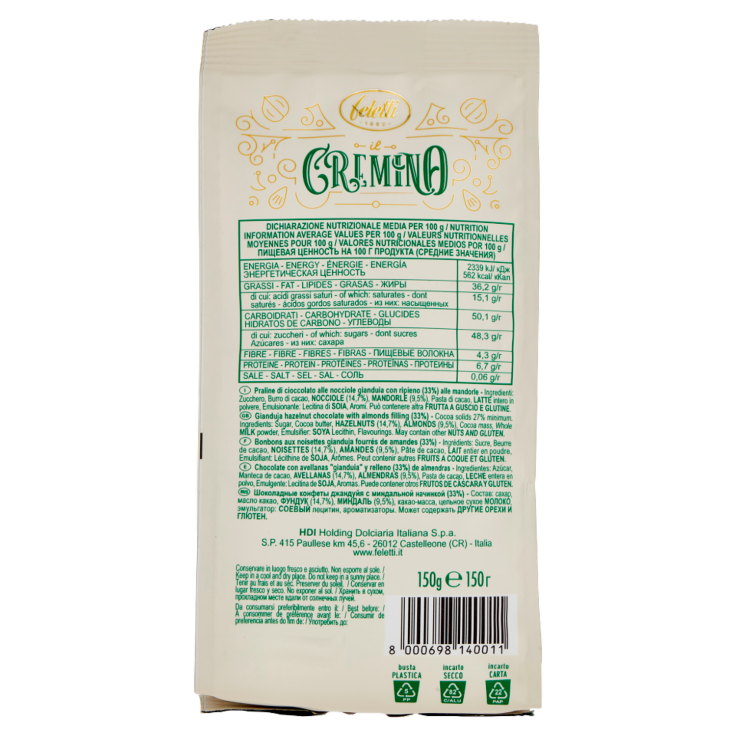 feletti I Classici il Cremino con Nocciole e Mandorle 150 g