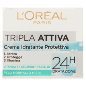 L'Oréal Paris Tripla Attiva Crema Idratante Viso, per Pelli Normali e Miste, 50 ml