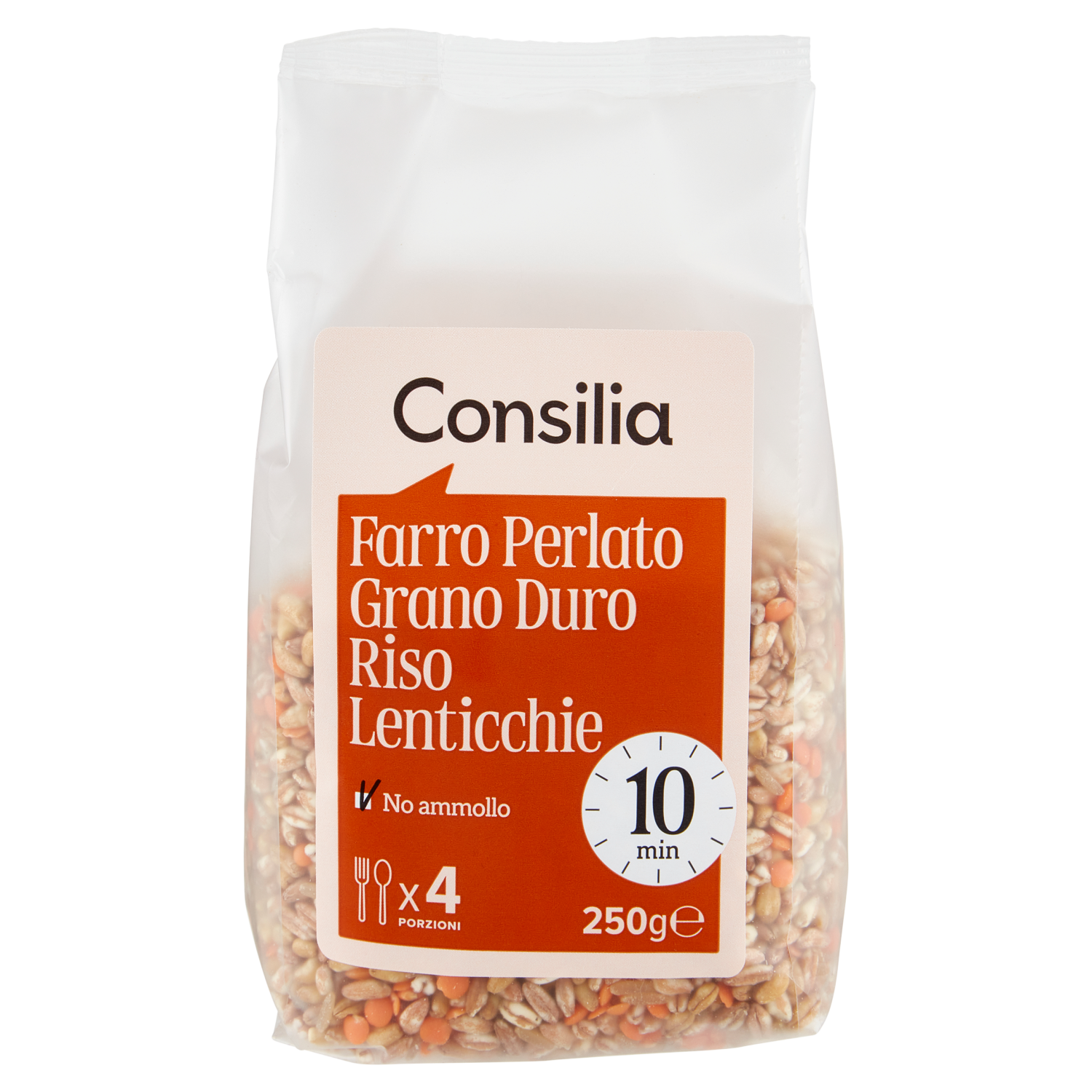Consilia Cereali e Legumi Secchi Misto Farro Perlato, Grano Duro, Riso Thai e Lenticchie 250 g