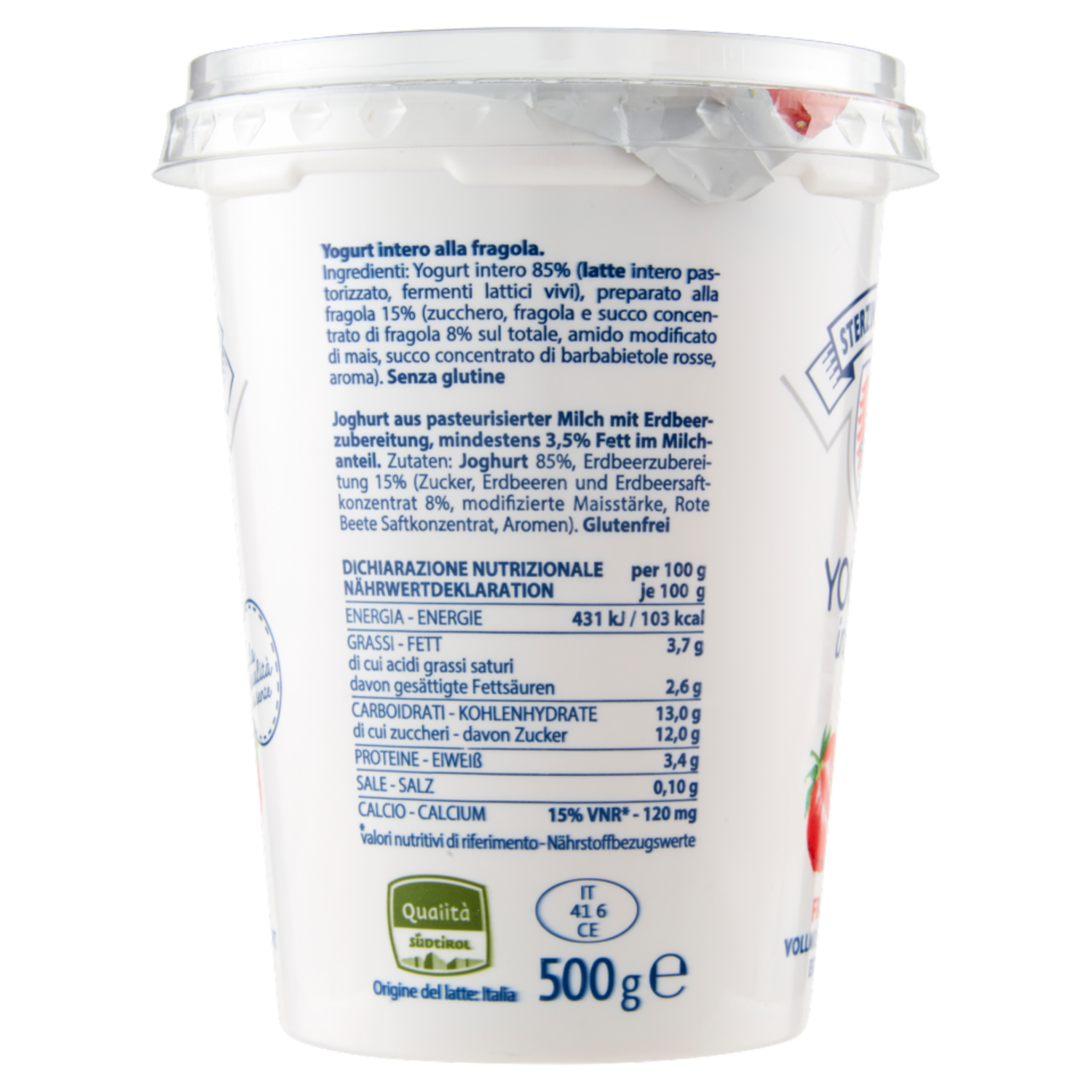Sterzing Vipiteno Yogurt intero Fragola 500 g
