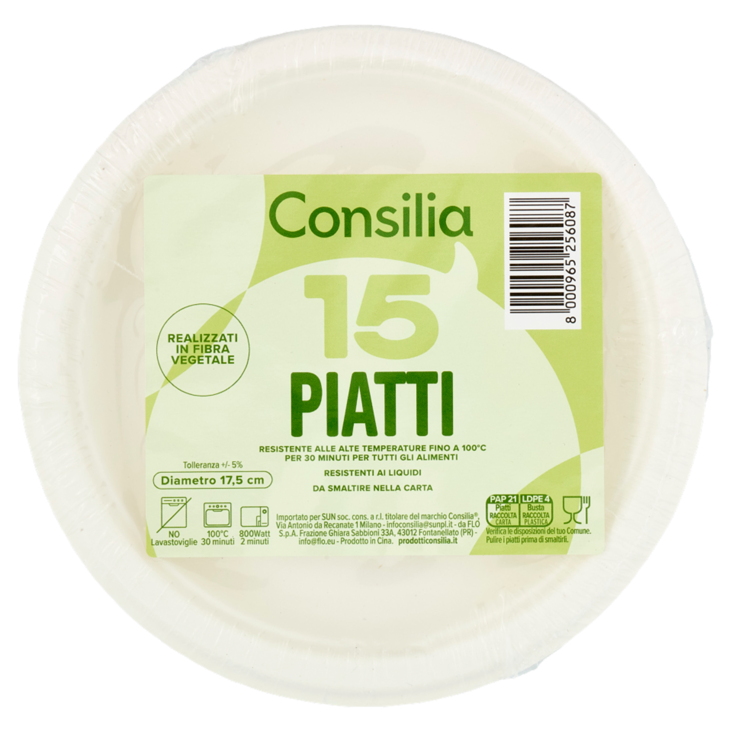Consilia Piatti Piani in Fibra Vegetale Biodegradabili Compostabili 17,5 cm 15 pezzi