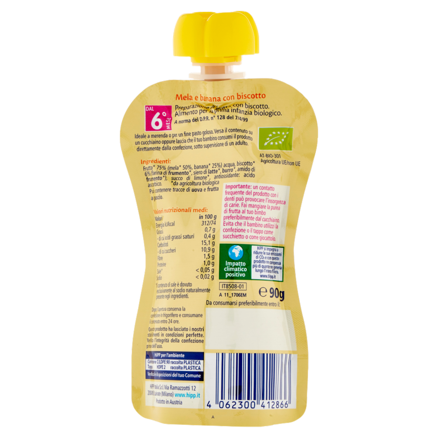 HiPP Biologico Frutta Frullata & Biscotto Mela e banana con biscotto 90 g