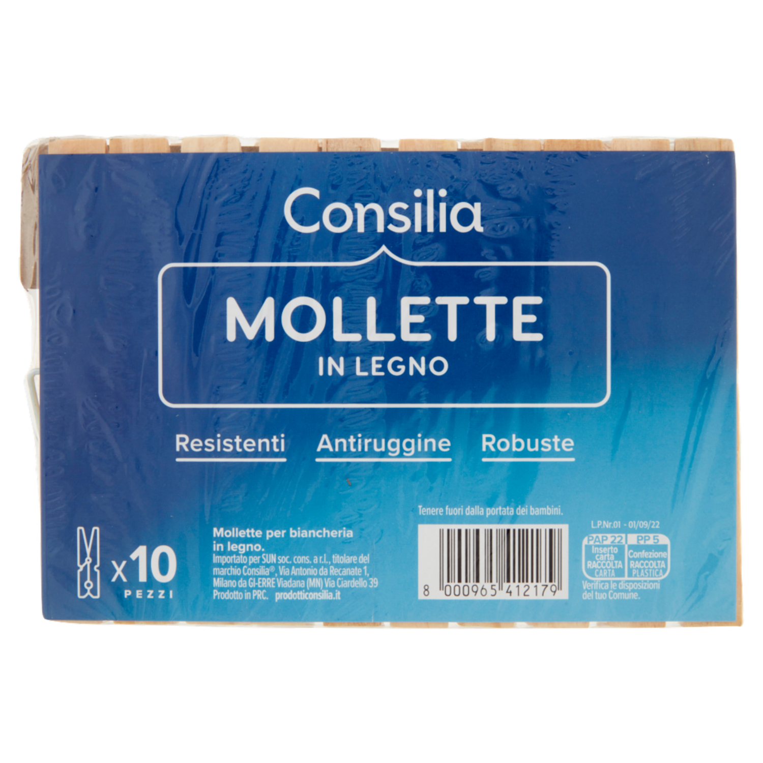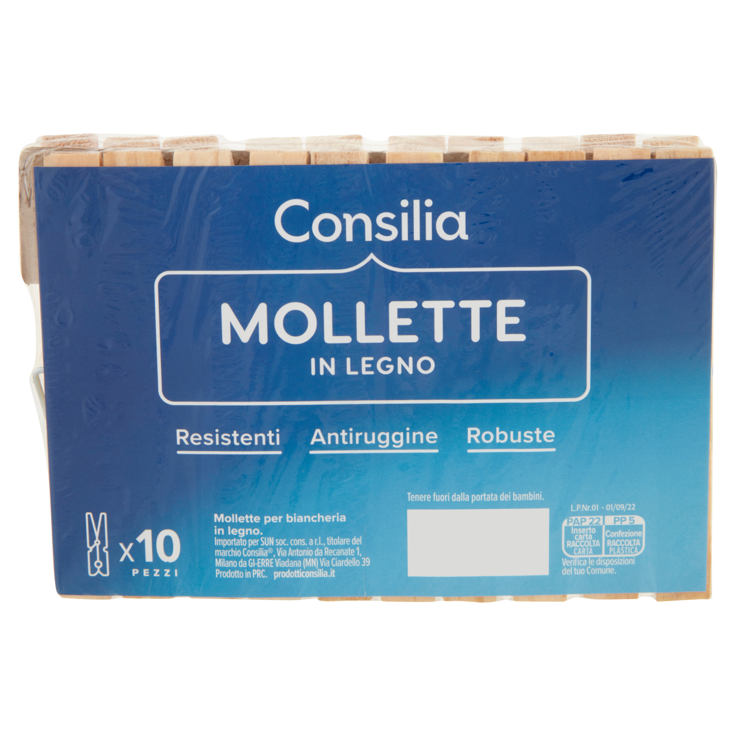 Consilia Mollette Biancheria Legno Grandi 10 pezzi