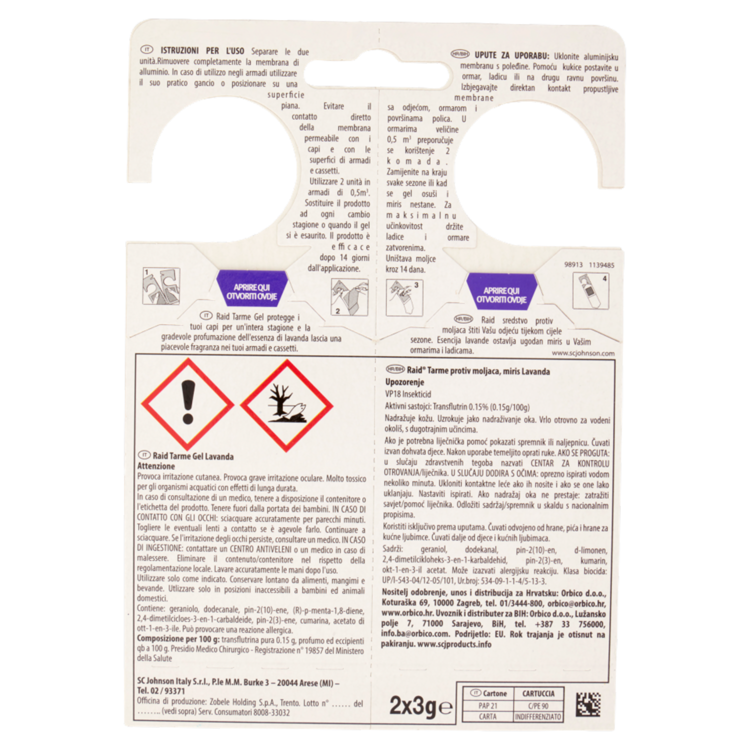 Raid Anti Tarme Gel Vestiti, per Capi Piacevolmente Profumati, Fragranza alla Lavanda, 2 x 3g