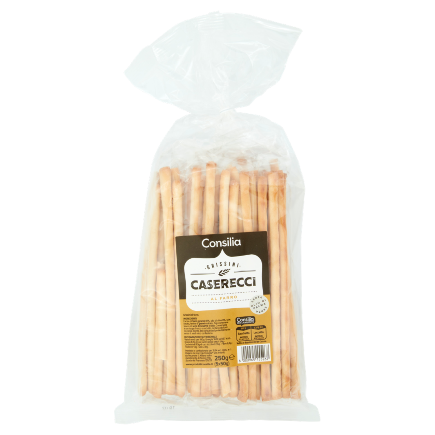 Consilia Grissini Caserecci al Farro in Confezioni Salvafreschezza 5 x 50 g