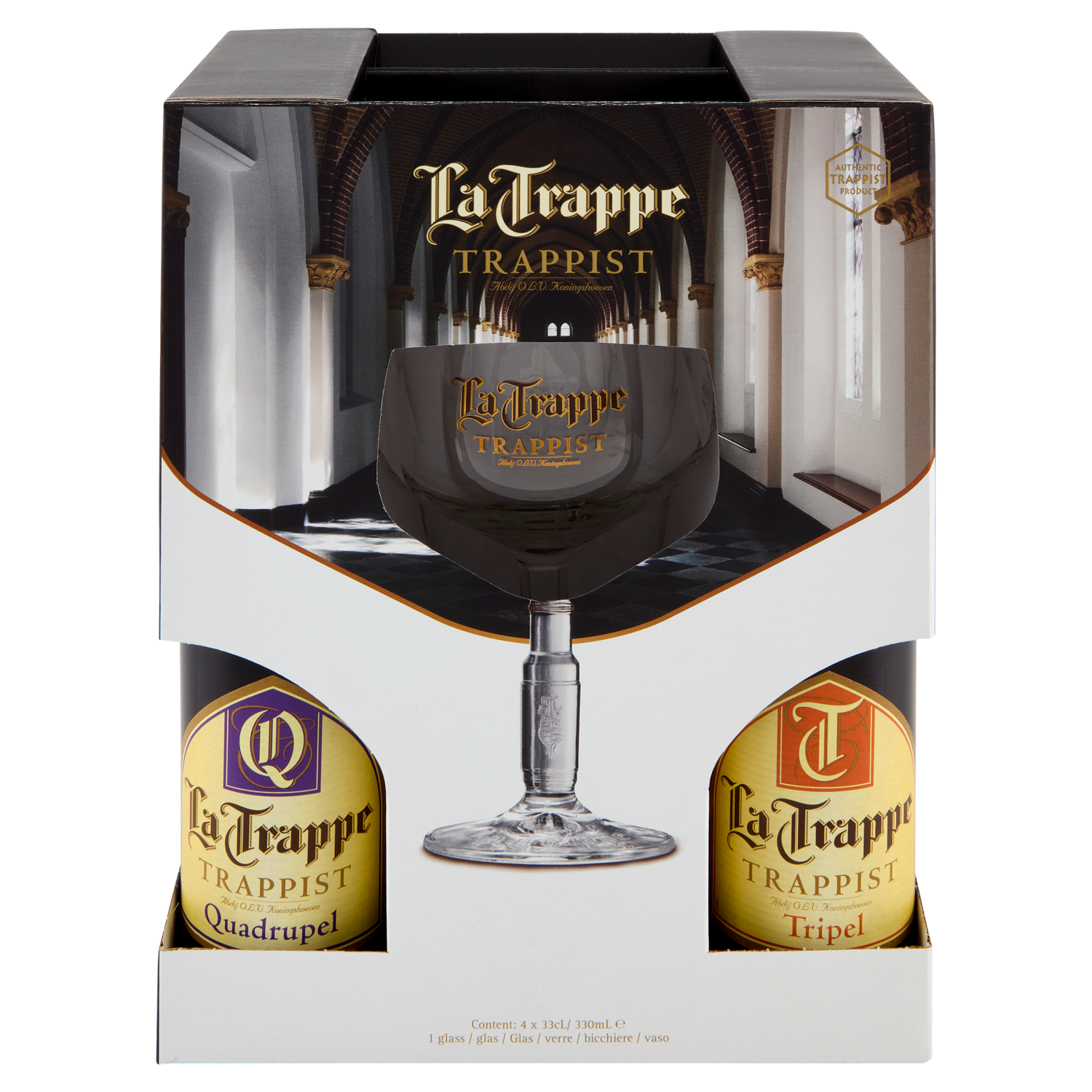 La Trappe Trappist Quadrupel 33 cL + Tripel 33 cL + Blond 33 cL + Isid'or 33 cL + 1 Bicchiere