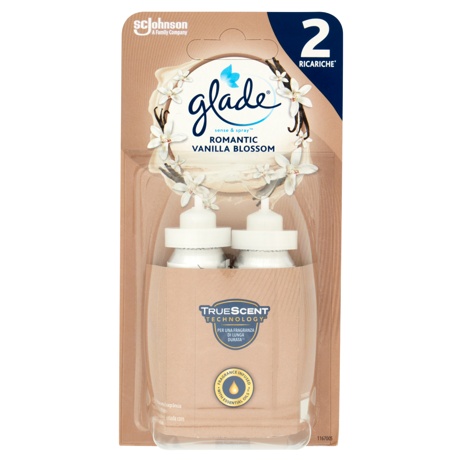 Glade Sense&Spray Doppia Ricarica, Profumatore Ambienti con Sensore, Romantic Vanilla Blossom 2x18ml