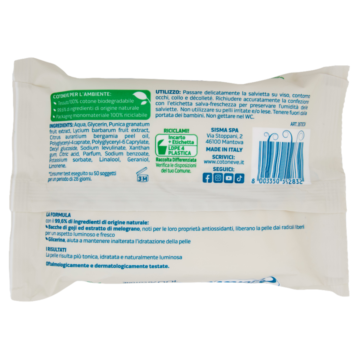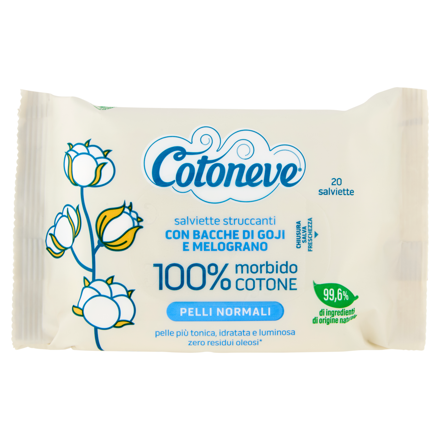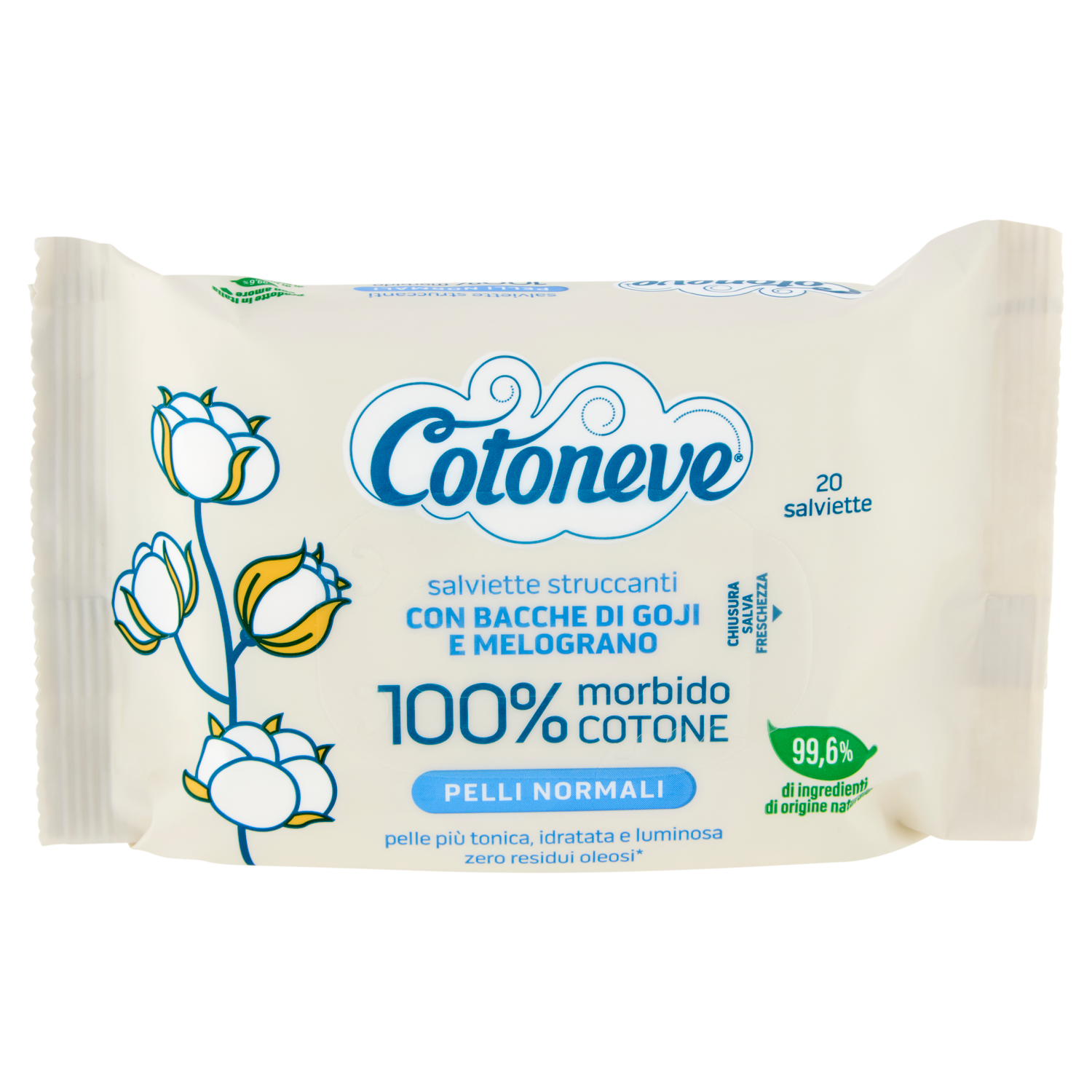 Cotoneve salviette struccanti con Bacche di Goji e Melograno Pelli Normali 20 pz