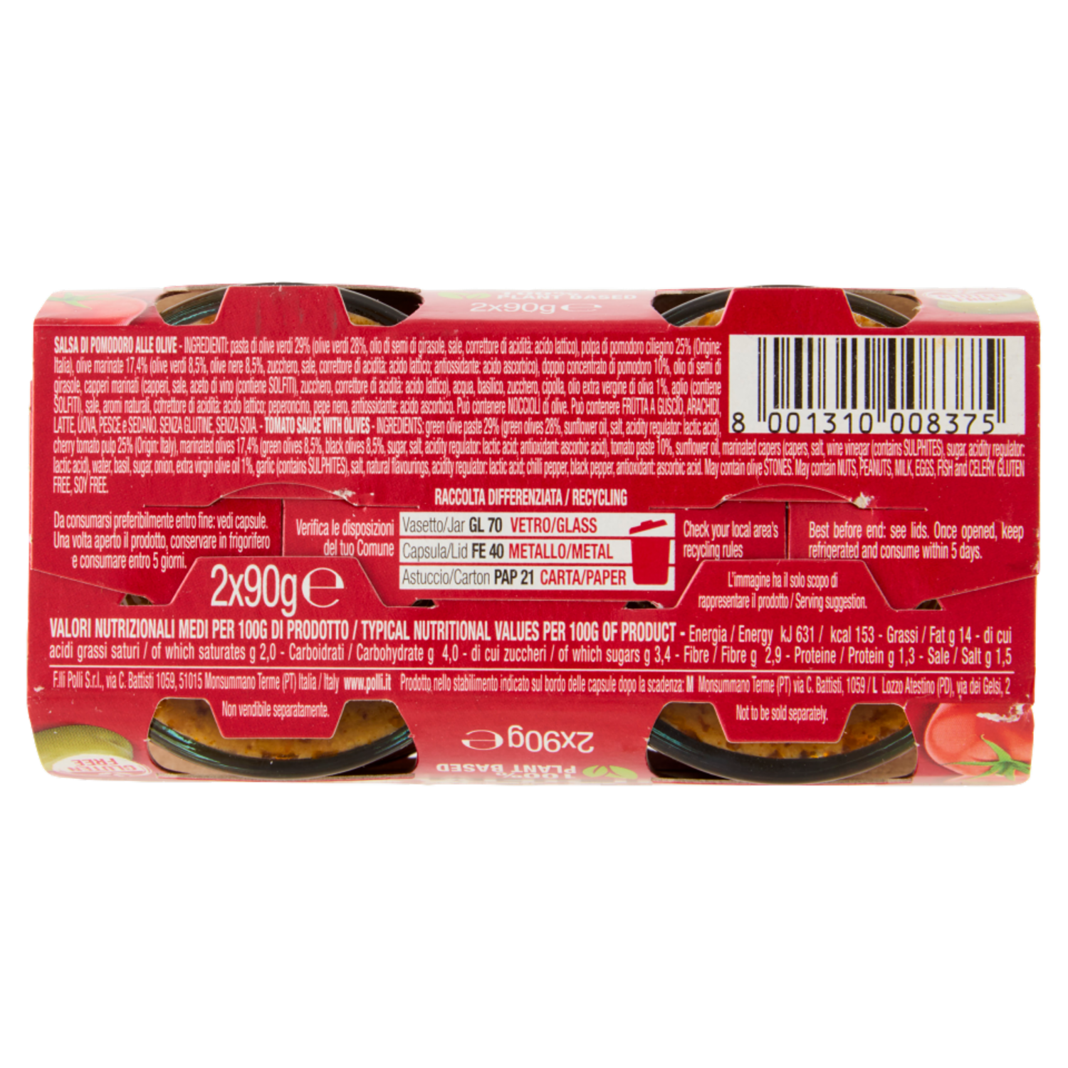 Polli Ragù Vegetale di Olive 2 x 90 g