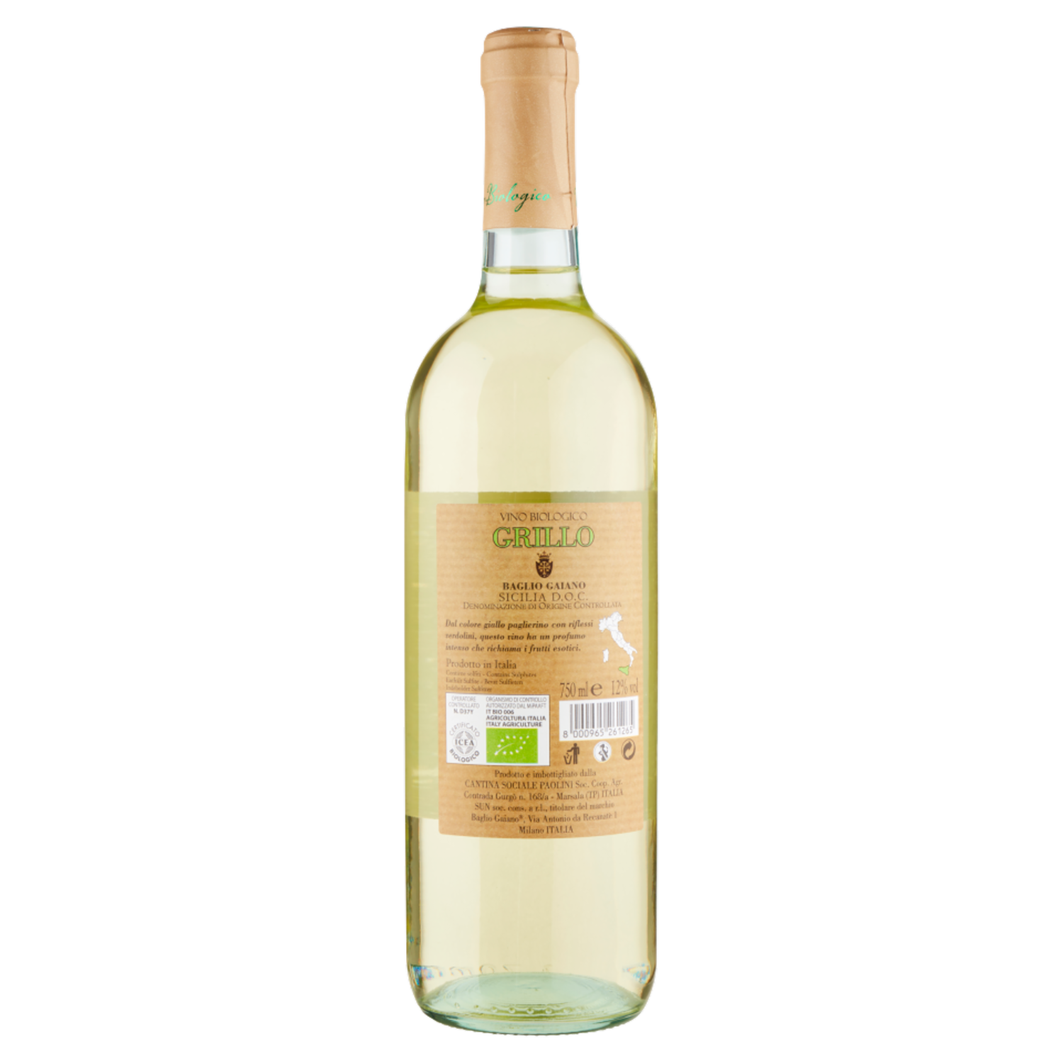 Baglio Gaiano Grillo Sicilia D.O.C. Vino Biologico 750 ml