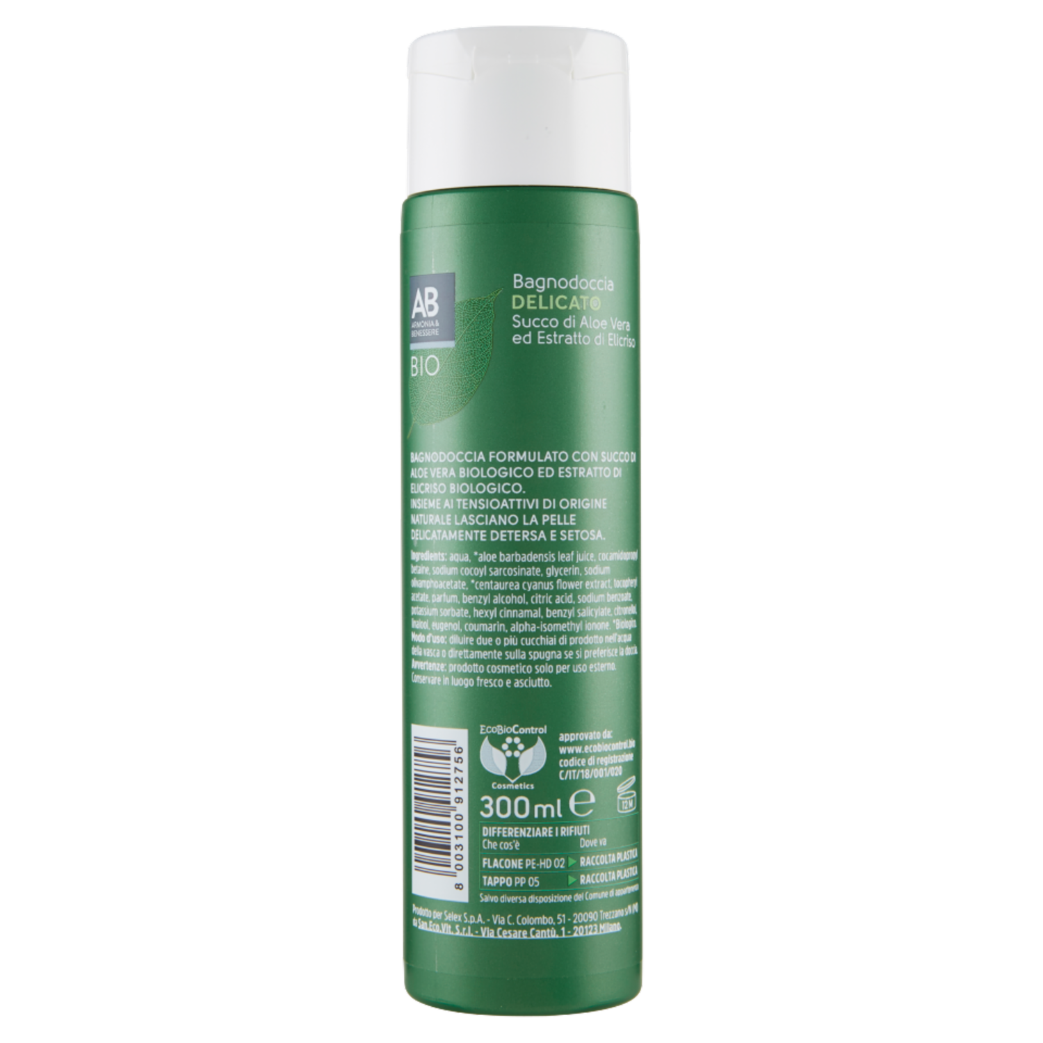 Armonia & Benessere Bagnodoccia Delicato Bio con Succo di Aloe Vera ed Estratto di Elicriso 300 ml