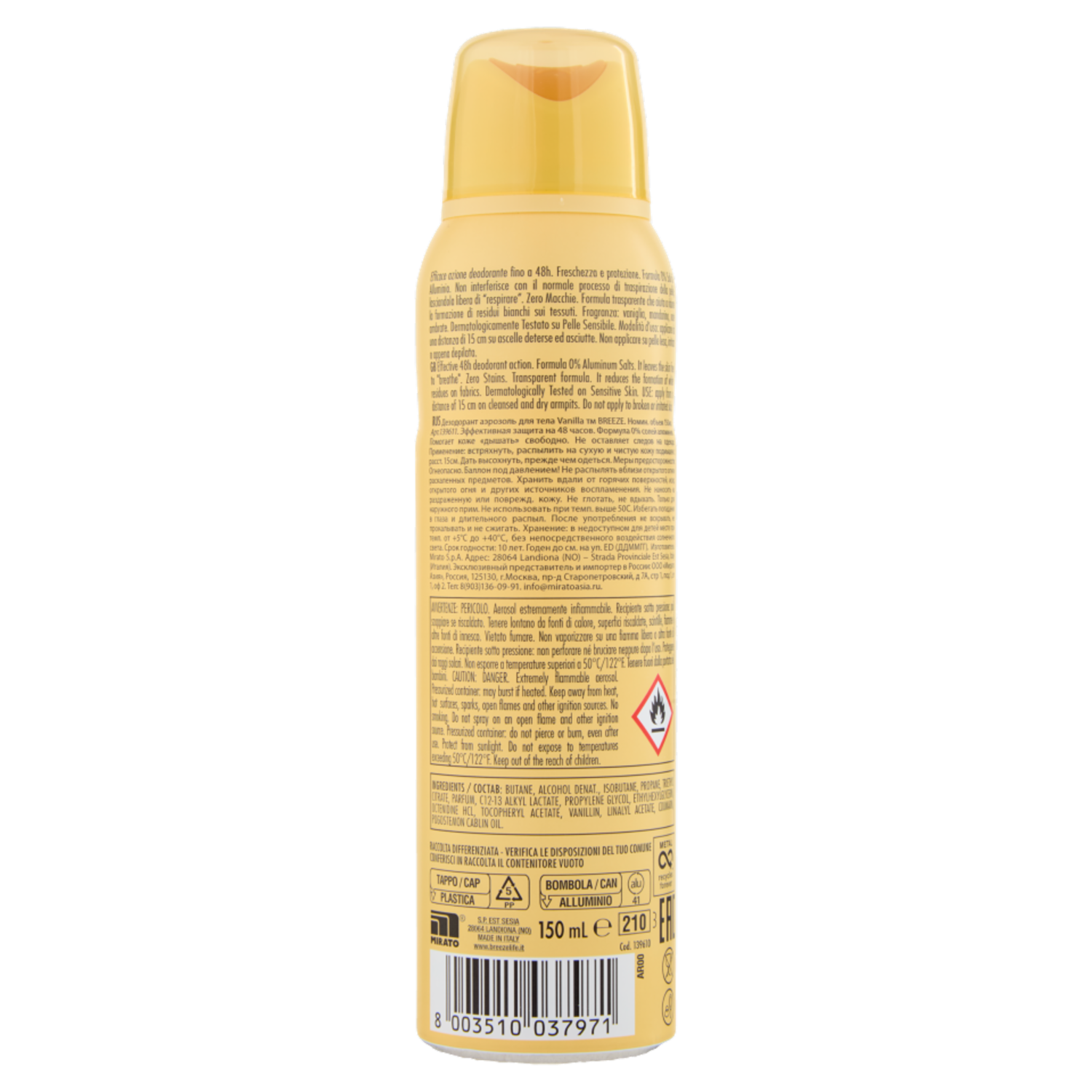 Breeze Vanilla Ambra e Vaniglia Deodorante Spray 150 mL