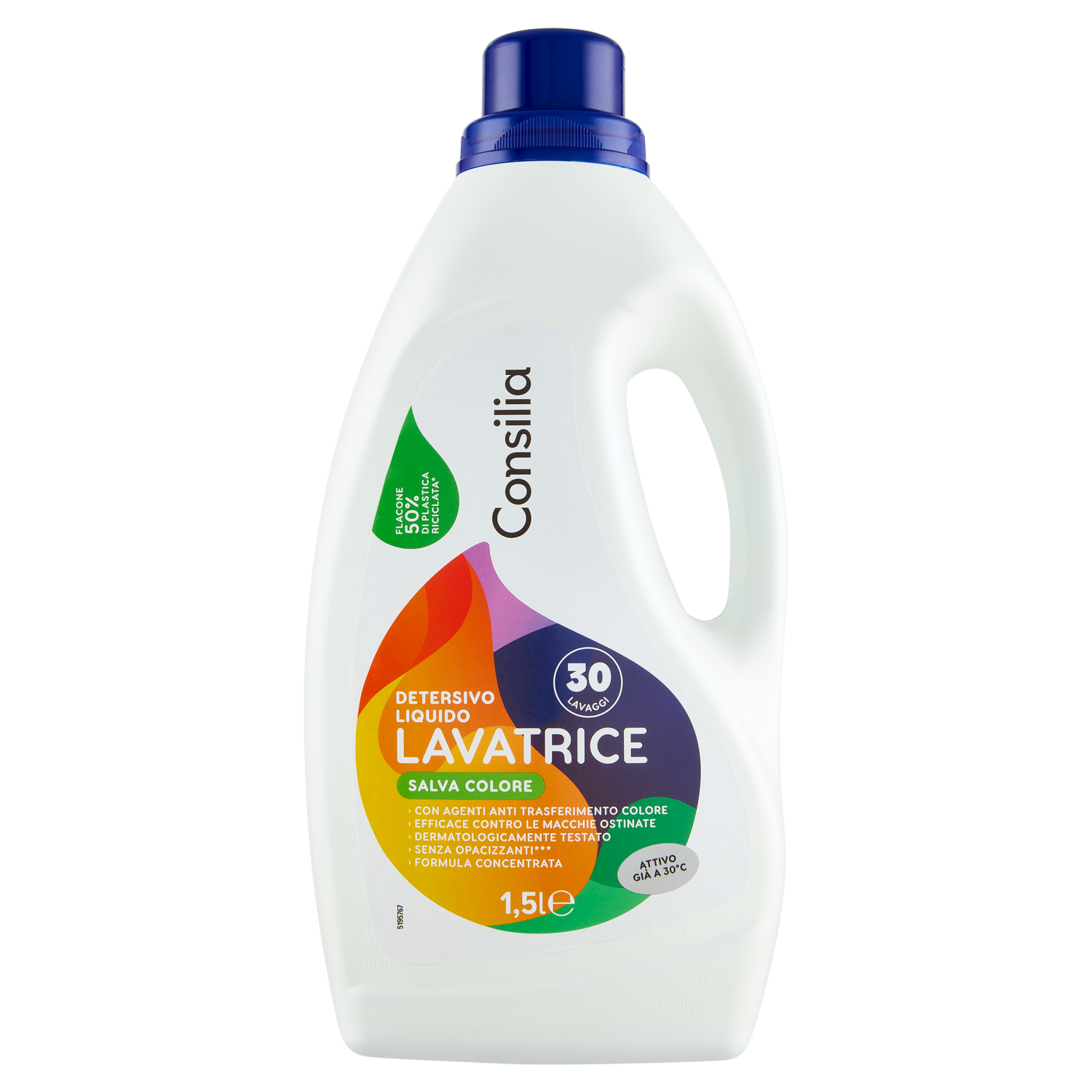 Consilia Detersivo per Lavatrice Liquido Capi Colorati 30 Lavaggi 1,5 L