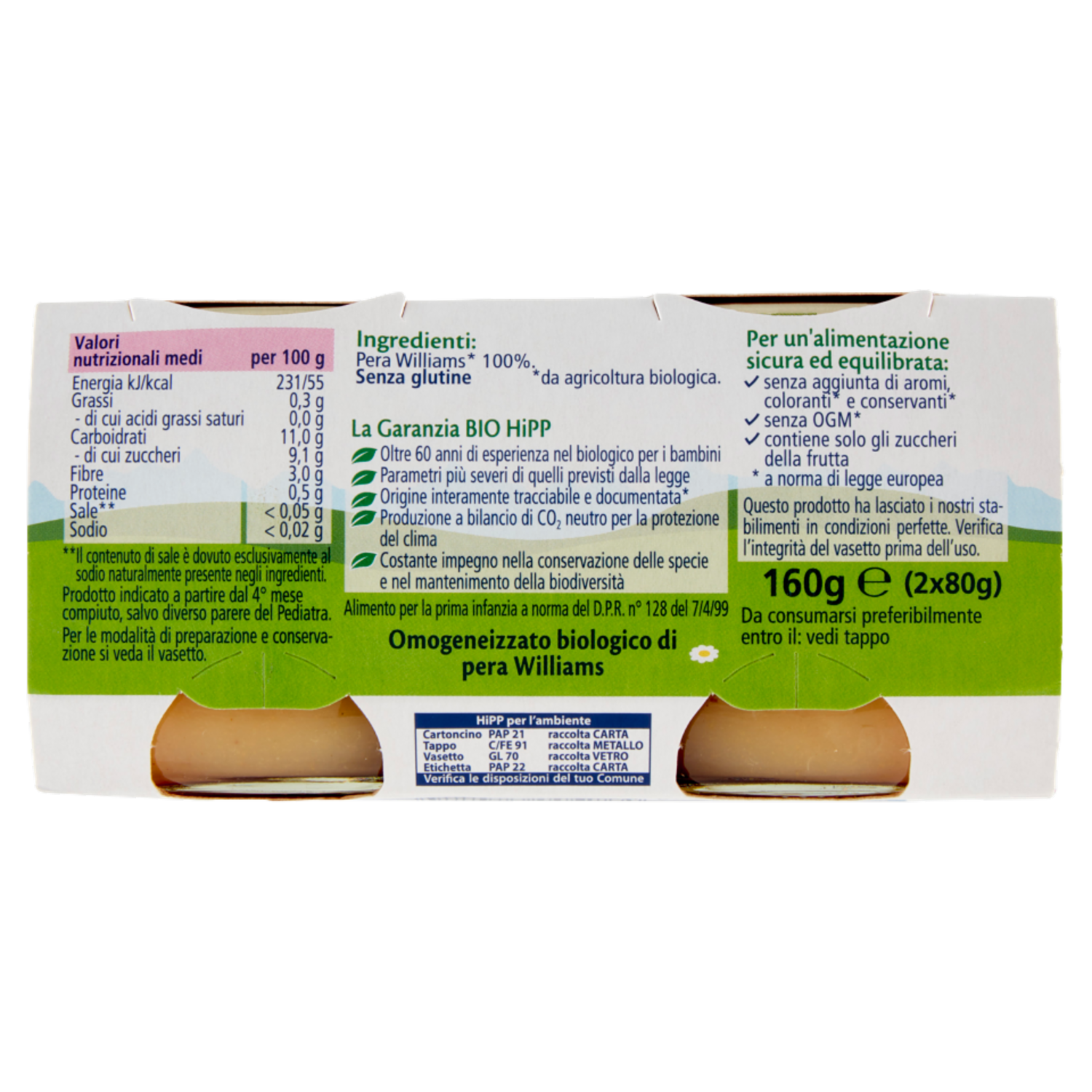 HiPP Biologico Pera Williams Omogeneizzato 2 x 80 g