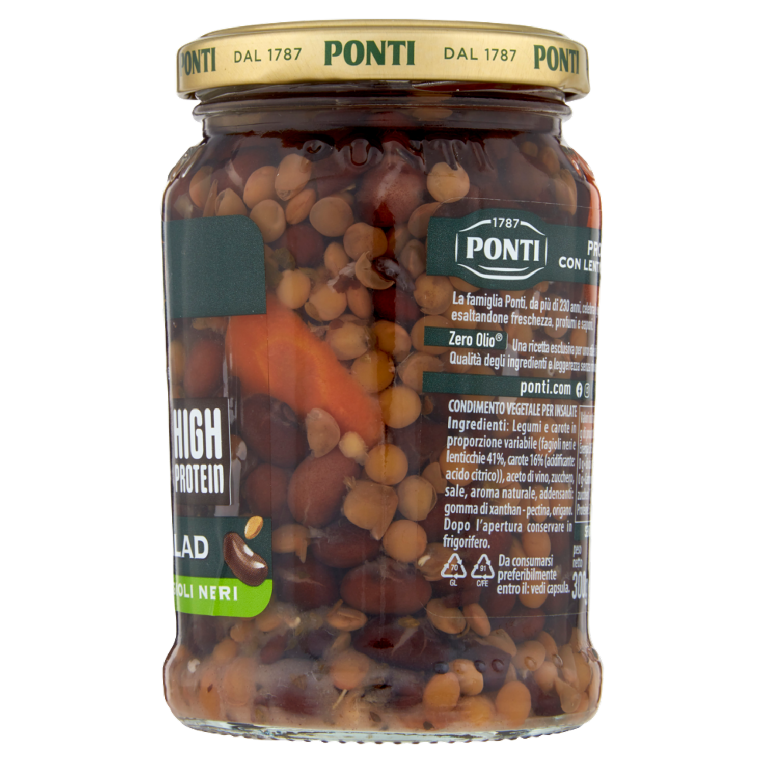 Ponti Zero Olio Protein Salad con Lenticchie e Fagioli Neri 300 g